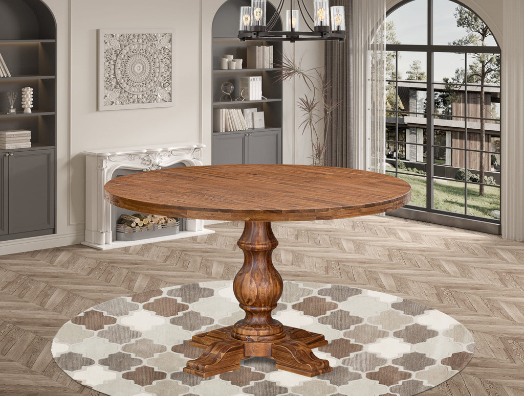 Rustic Farmhouse – A distressed oak round table pairs beautifully with wooden or upholstered chairs, bringing cozy countryside charm to your home.