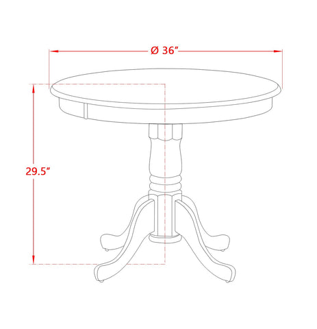 • Table Dimensions: Length: 36; Width: 36; Height: 30.