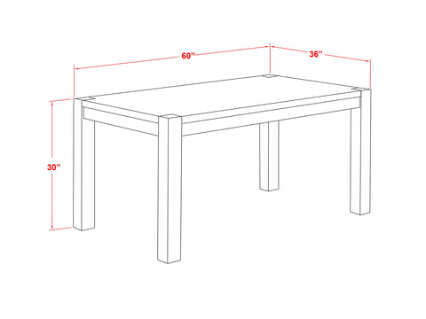 • Table Dimension: Length: 60; Width: 36; Height: 30.