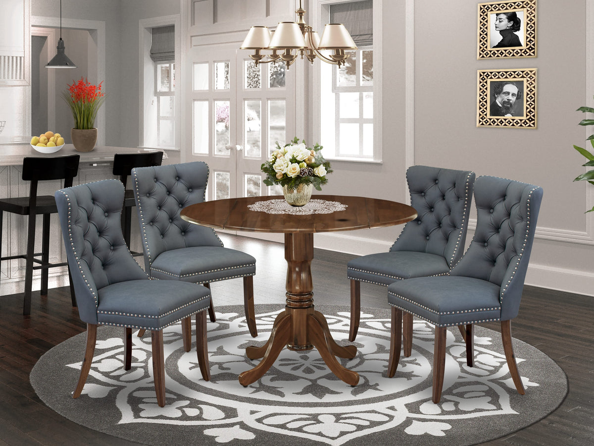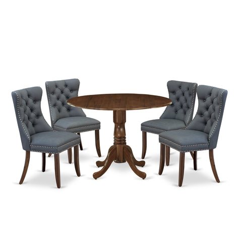 East West Furniture DLDA5-AWA-13 5 Piece Dining Table Set Includes a Round Kitchen Table with Dropleaf and 4 Upholstered Parson Chairs, 42x42 Inch, Antique Walnut Sale