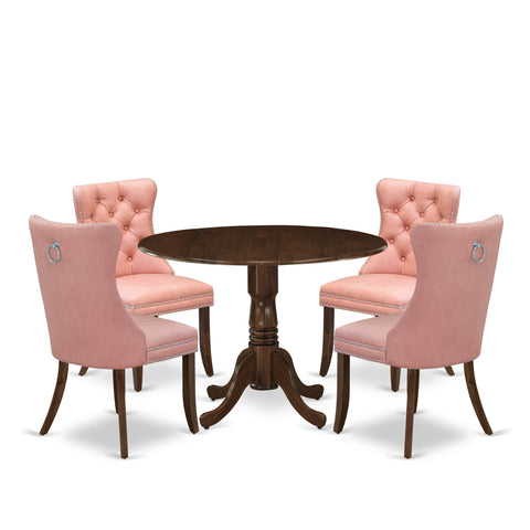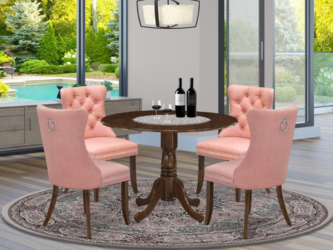 East West Furniture DLDA5-AWA-23 5 Piece Dining Room Furniture Set Includes a Round Kitchen Table with Dropleaf and 4 Upholstered Chairs, 42x42 Inch, Antique Walnut Sale
