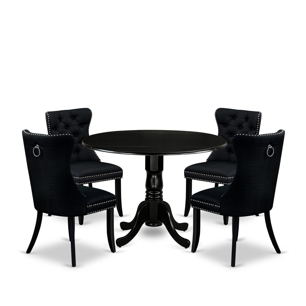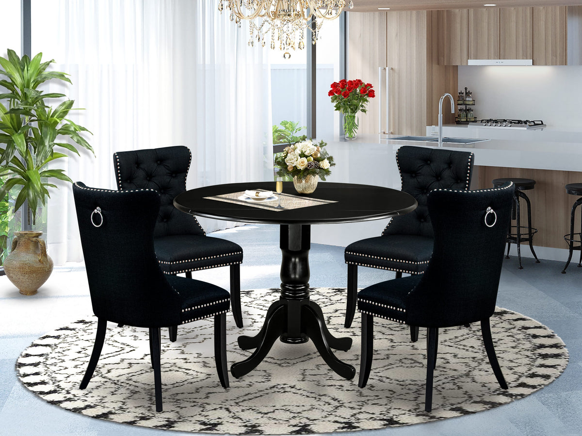 East West Furniture DLDA5-BLK-24 5 Piece Dining Room Table Set Contains a Round Solid Wood Table with Dropleaf and 4 Padded Chairs, 42x42 Inch, Black Sale