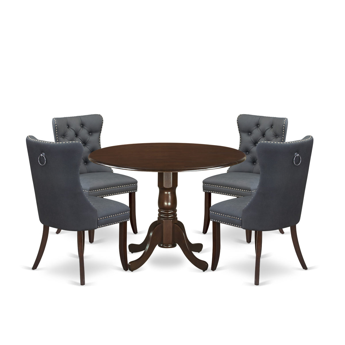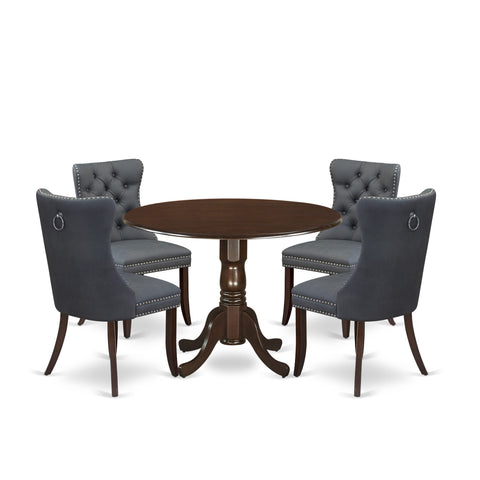 East West Furniture DLDA5-MAH-13 5 Piece Dining Set Consists of a Round Kitchen Table with Dropleaf and 4 Parson Chairs, 42x42 Inch, Mahogany Sale