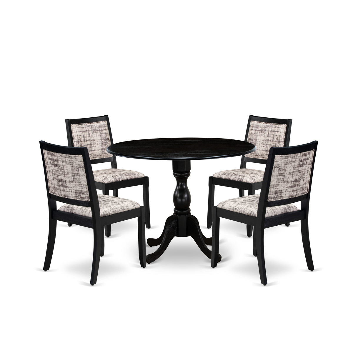 East West Furniture DMX25-ABK-30 -5 Piece Dining Set Includes a Round Kitchen Table with Wire Brushed Black Tabletop & 4 Stackable Linen Fabric Chairs Sale