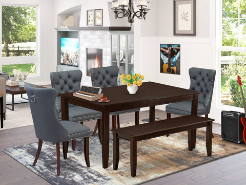East West Furniture DUDA6-MAH-13 6 Piece Dining Table Set Consists of a Rectangle Kitchen Table and 4 Padded Chairs with a Bench, 36x60 Inch, Mahogany Sale