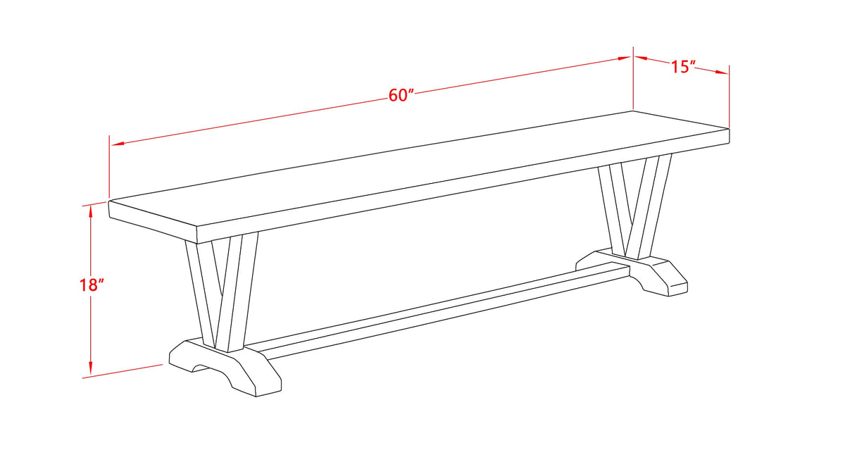 • Bench Dimensions: Length: 60; Width: 15; Height: 18.