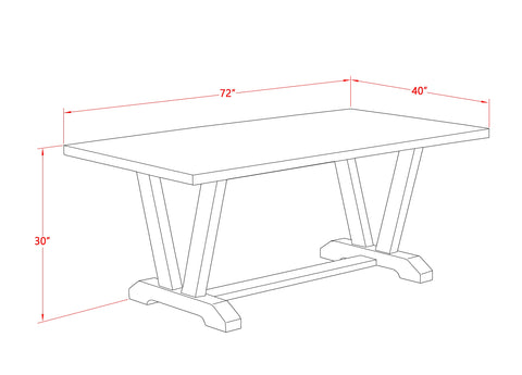 • Table Dimensions: Length: 72; Width: 40; Height: 30.