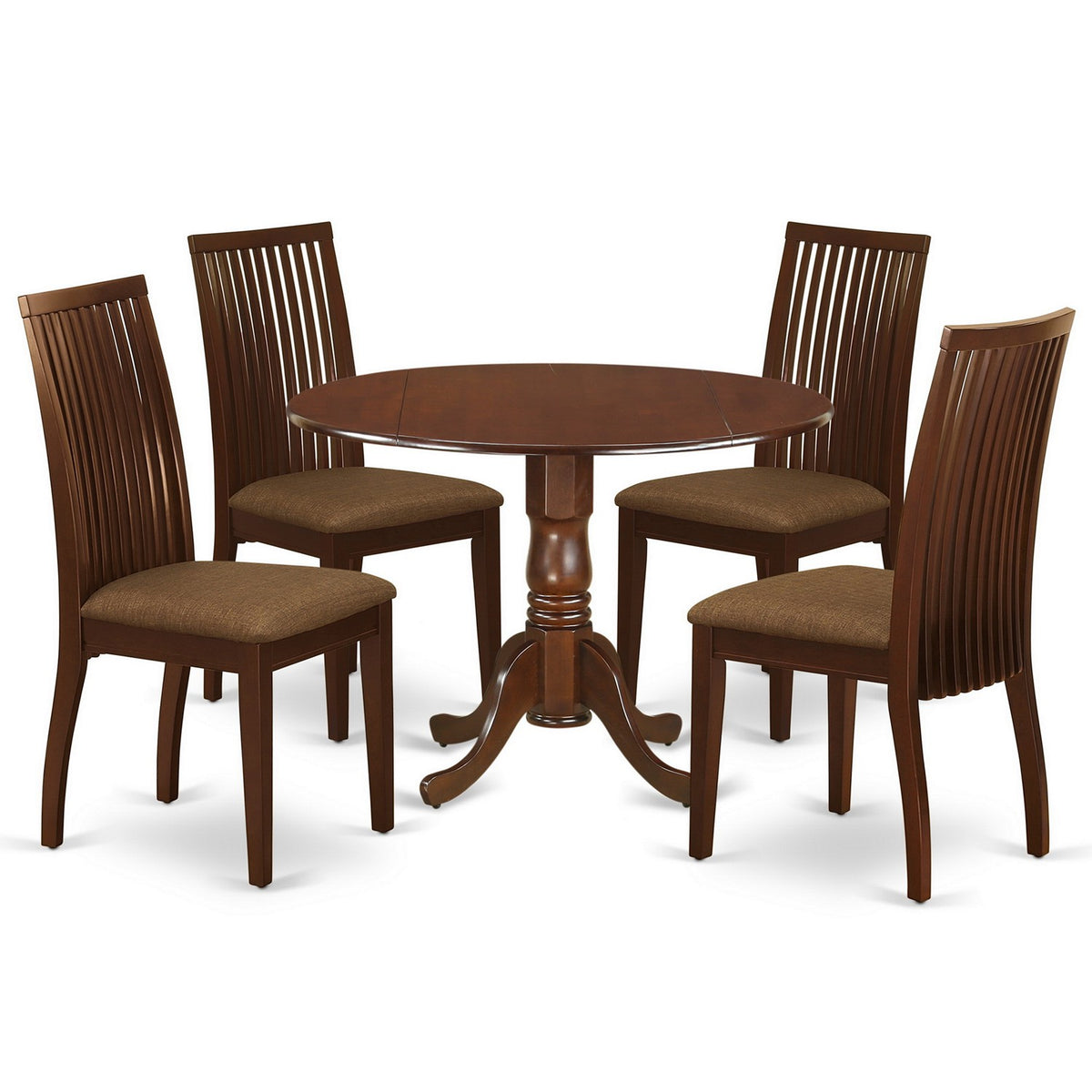 East West Furniture DLIP5-MAH-C 5 Piece Modern Dining Table Set Includes a Round Wooden Table with Dropleaf and 4 Linen Fabric Dining Room Chairs Sale