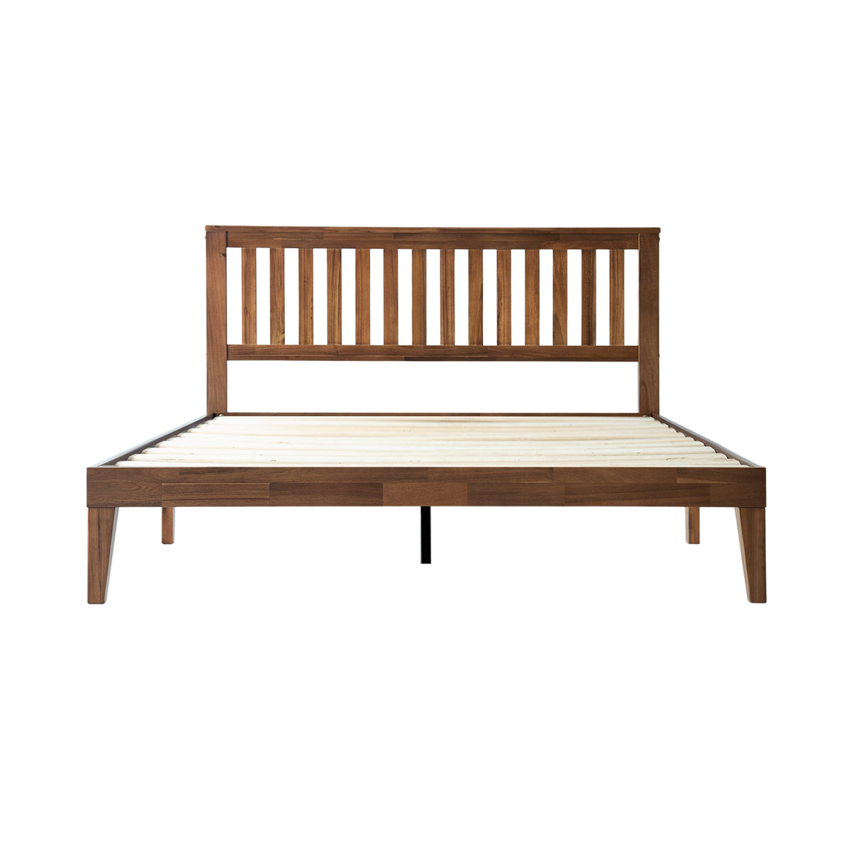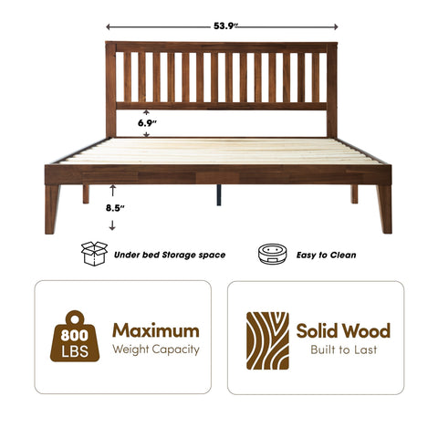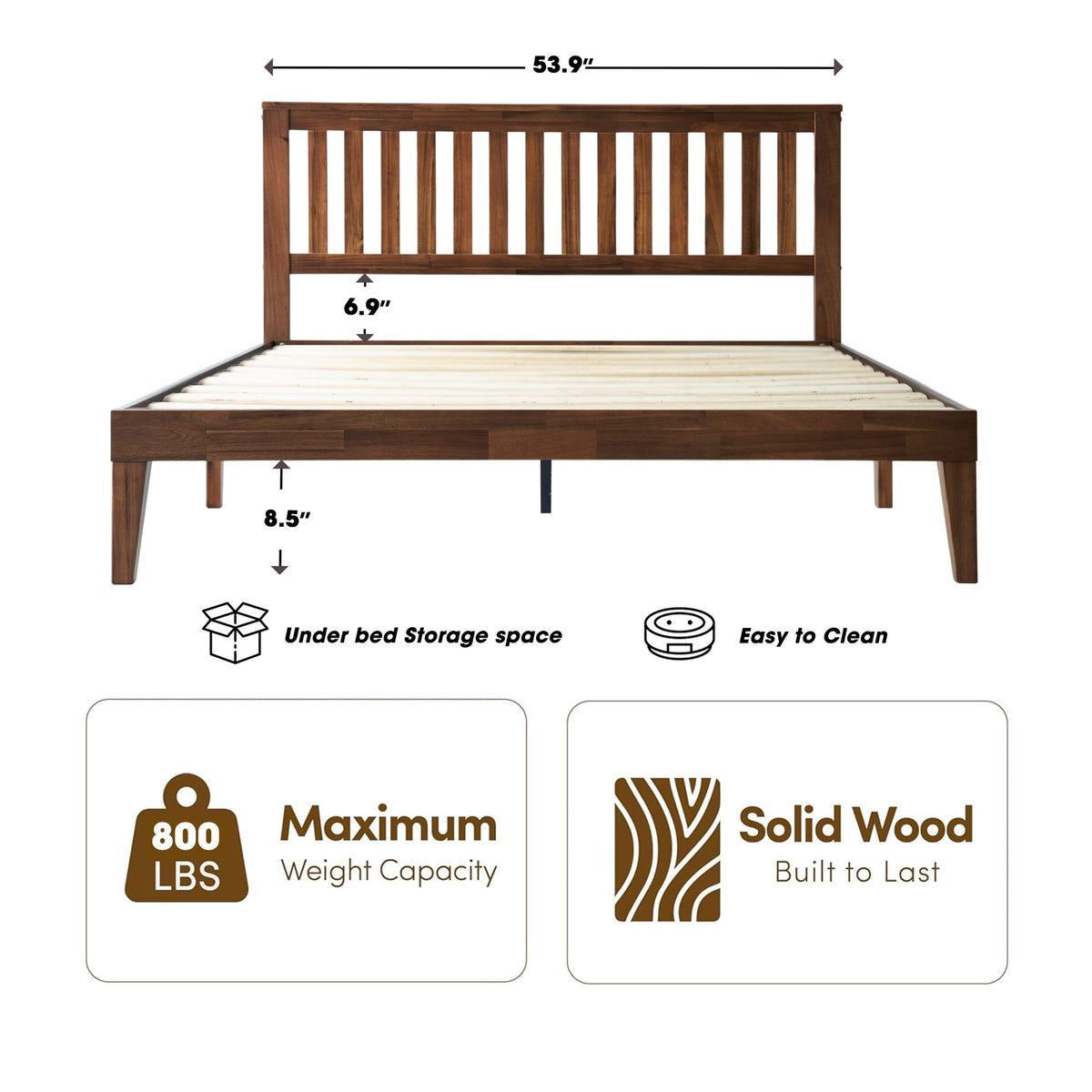 Elevate your bedroom with the timeless elegance of the Japer Full-Size Bed Frame, expertly crafted from 100% solid wood for enduring strength and natural charm. Featuring a minimalist slatted headboard and a rich walnut finish, this bed brings warmth and sophistication to both modern and classic spaces. The 12-slat solid wood platform, reinforced with sturdy metal center legs, ensures exceptional stability and silent support no box spring needed. With a weight capacity of up to 800 lbs, the Japer Bed delivers lasting durability and dependable comfort for years to come. Every detail, from the smooth finish and refined back panel to the neat screw covers, showcases East West Furniture’s attention to quality and craftsmanship. The 8.5-inch under-bed clearance provides convenient storage space, while the 6.9-inch gap below the bottom rail allows for easy cleaning. Simple to assemble and designed to last, the Japer Bed perfectly blends modern simplicity, robust construction, and elegant design ideal for creating a cozy, stylish bedroom retreat.
