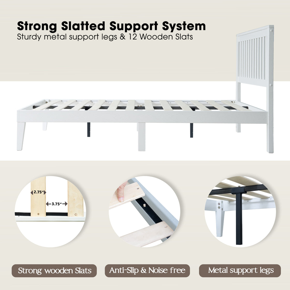 • Platform Support: 12 Durable Wooden Slats + Metal Center Legs