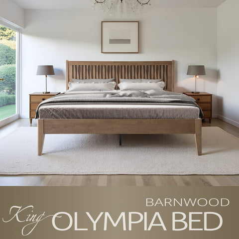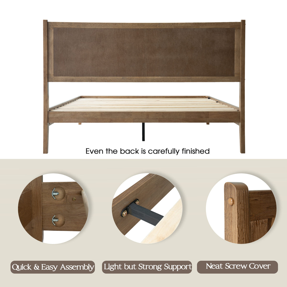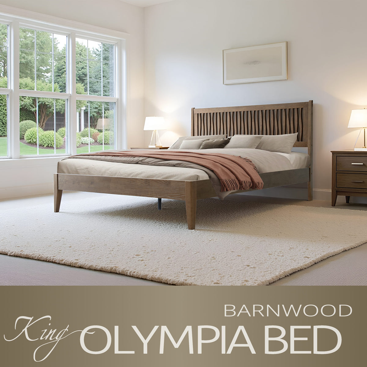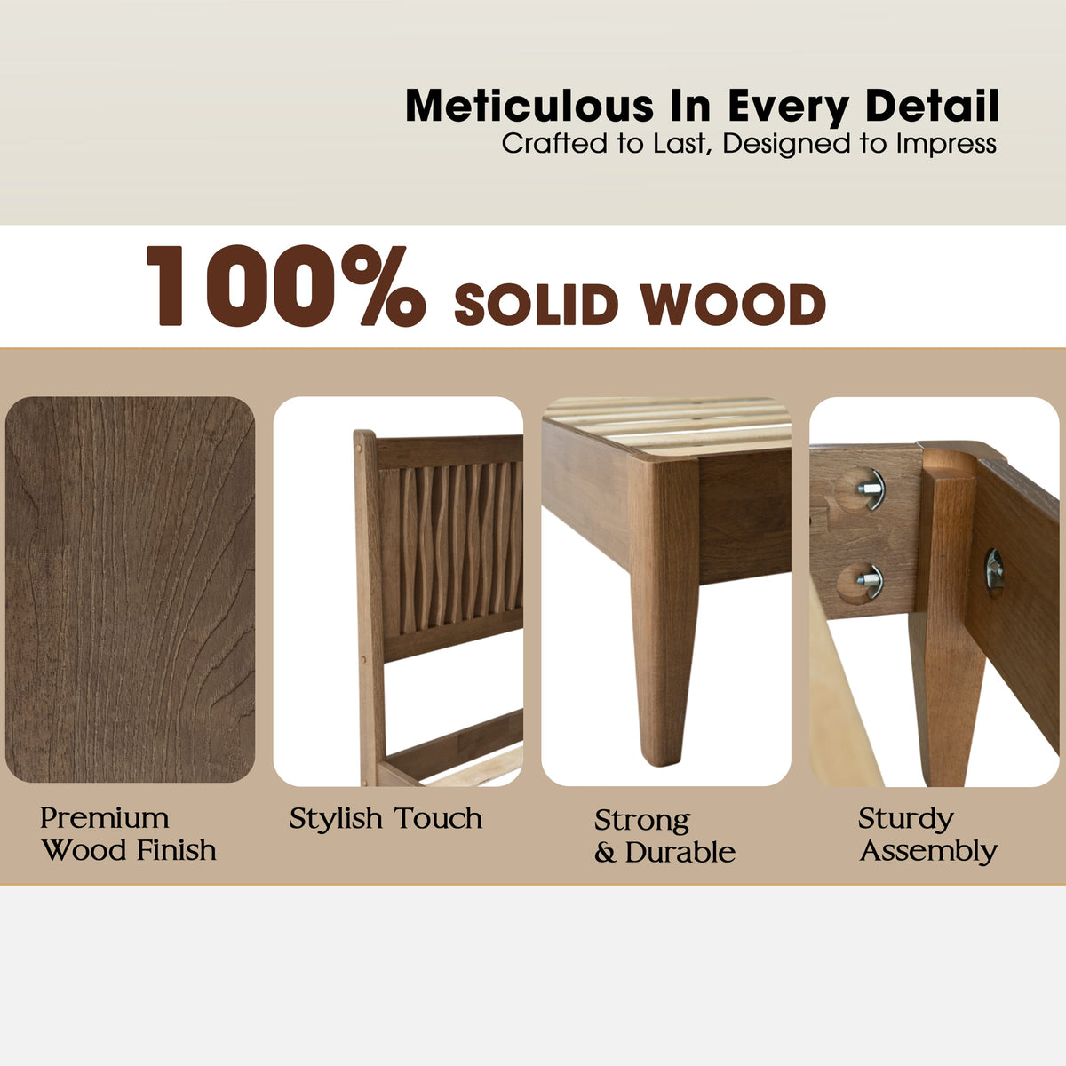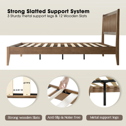 King Size Bed Frame, Solid Wood Platform Bed with Headboard & Footboard, 12 Sturdy Slatted Structure, Central Metal Legs, Easy Assembly, Noise & Anti-Slip, No Box Spring Needed, Barnwood Finish, OLK-30 Sale