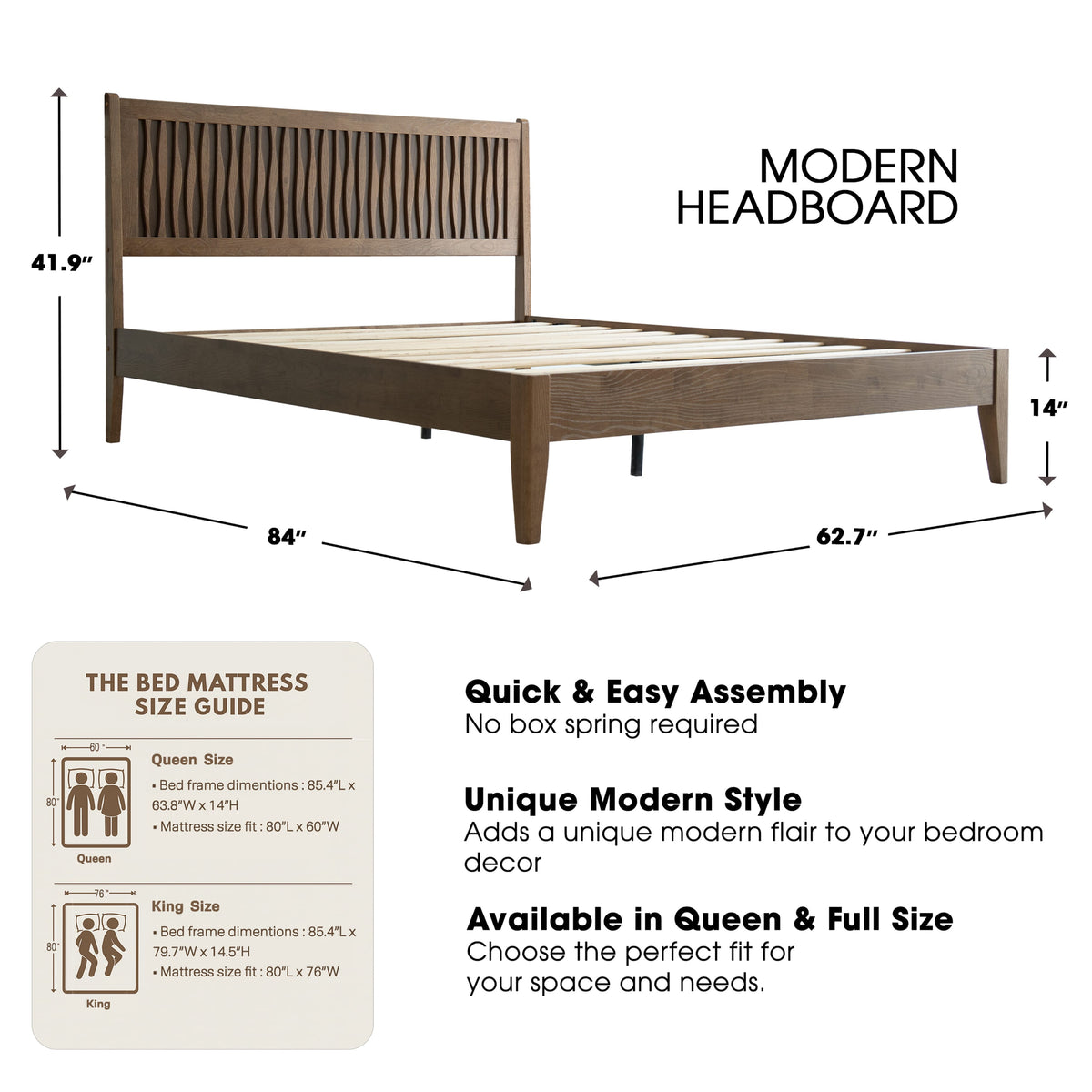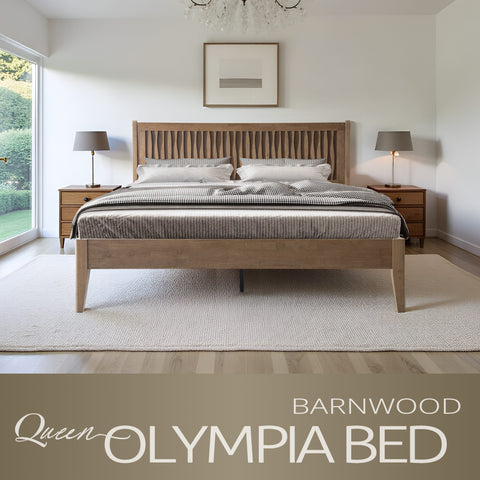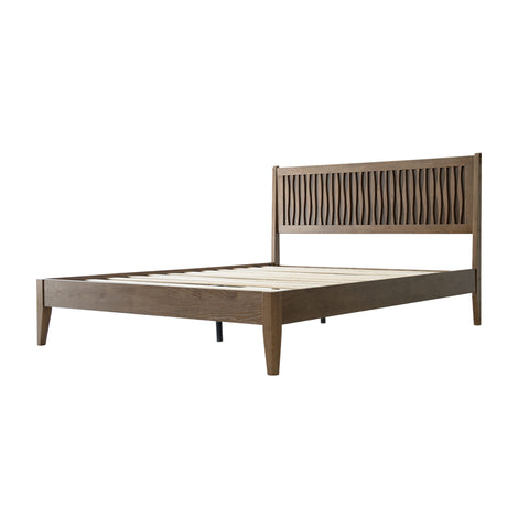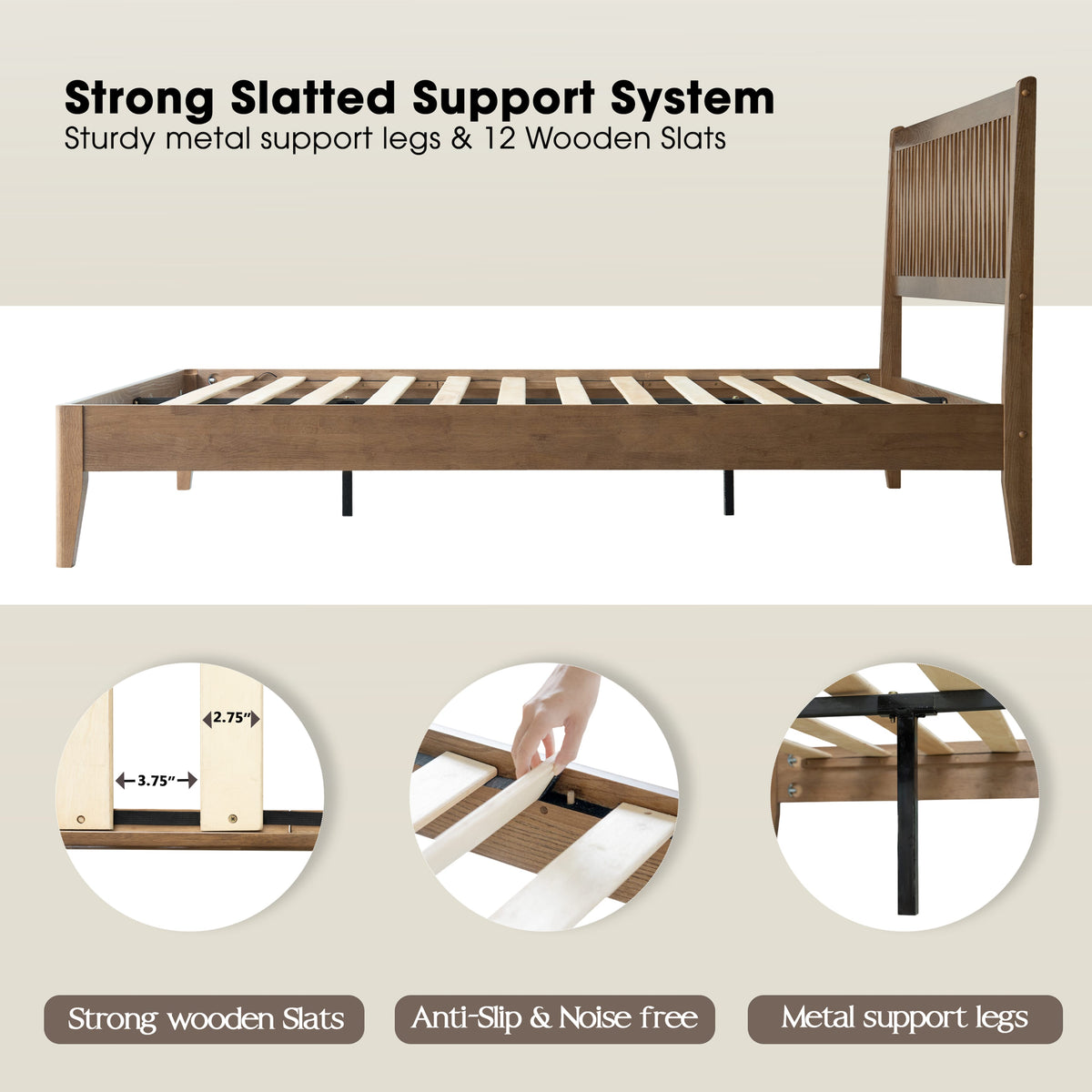 Queen Size Bed Frame with Headboard & Footboard Solid Wood Platform Bed, Metal Legs, 12 Sturdy Slatted Structure, No Box Spring Needed, Anti-Noise & Slip-Free, Easy Assembly, Barnwood Finish, OLQ-30 Sale