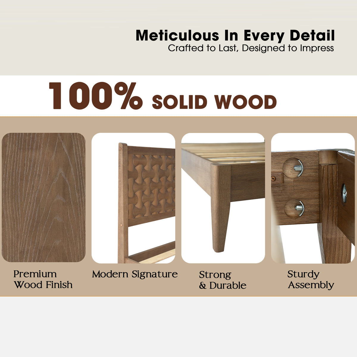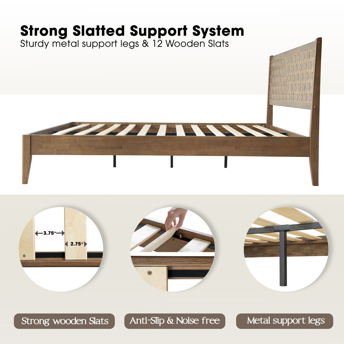 • Platform Support: 12 Durable Wooden Slats + Metal Center Legs