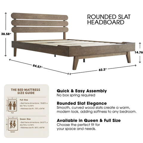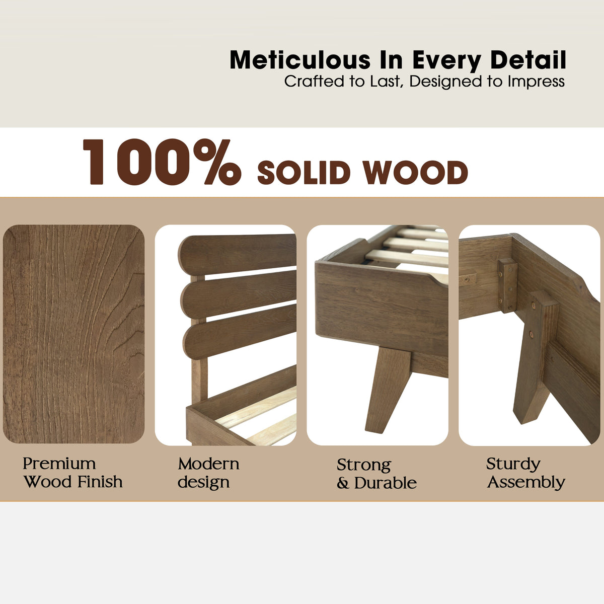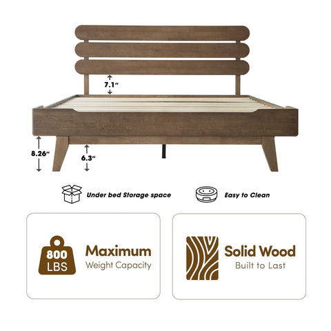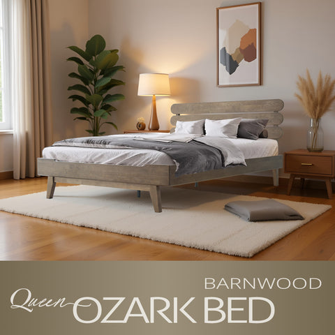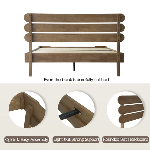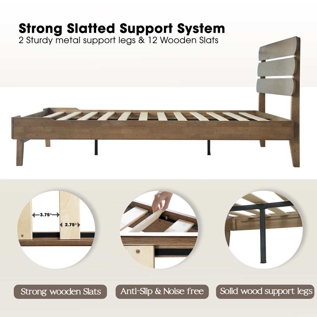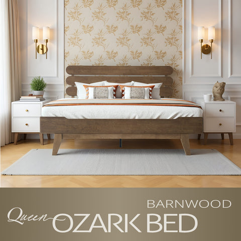 Queen Size Bed Frame with Headboard & Footboard Solid Wood Platform Bed, Center Metal Legs, 12 Sturdy Slatted Base, Easy Assembly, No Box Spring Needed, Anti-Noise & Slip-Free, Barnwood Finish, OZQ-30 Sale