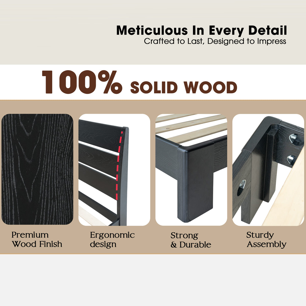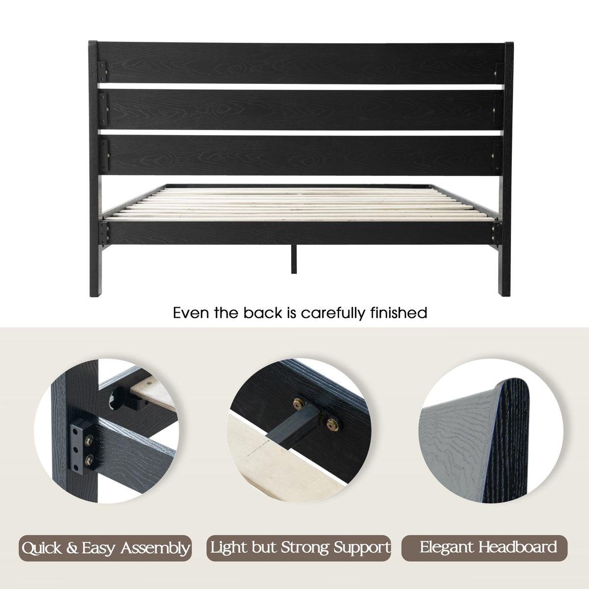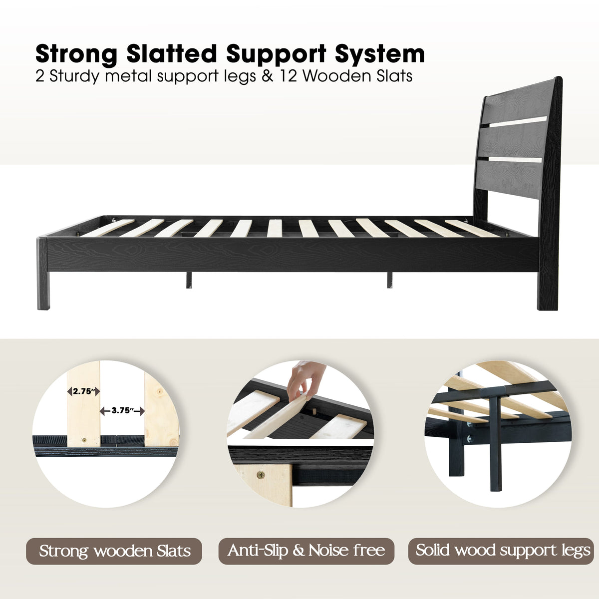 • Platform Support: 12 Sturdy Wooden Slats + Reinforced Metal Bar