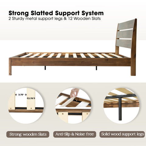• Platform Support: 12 Durable Wooden Slats + Reinforced Metal Center Legs