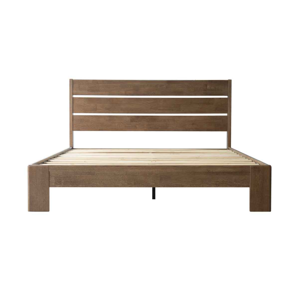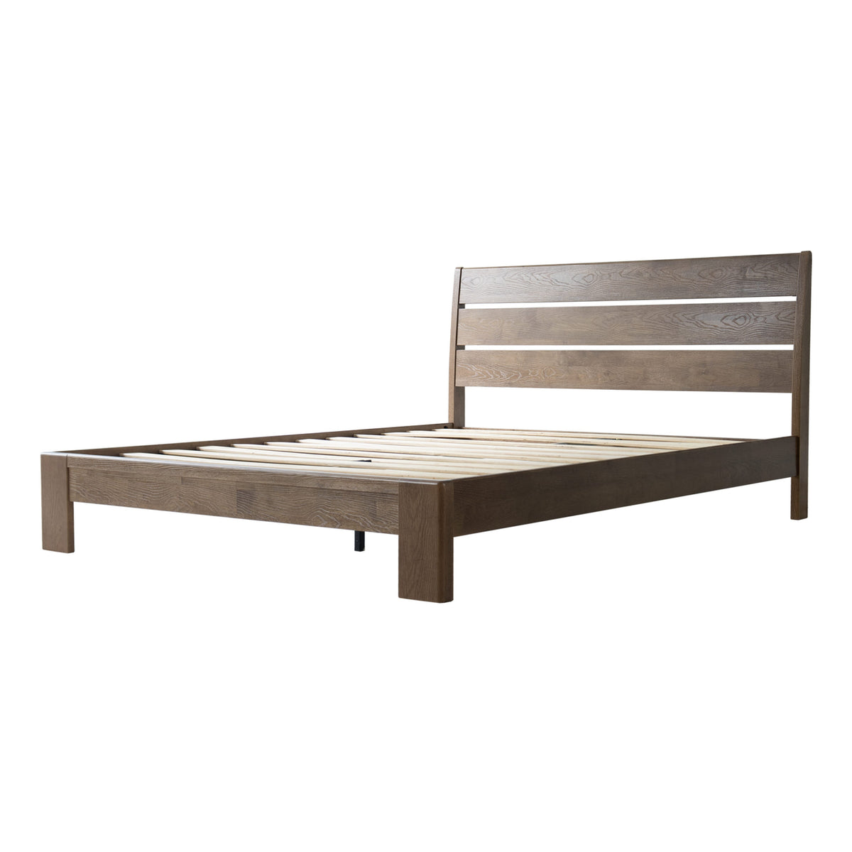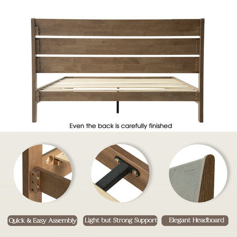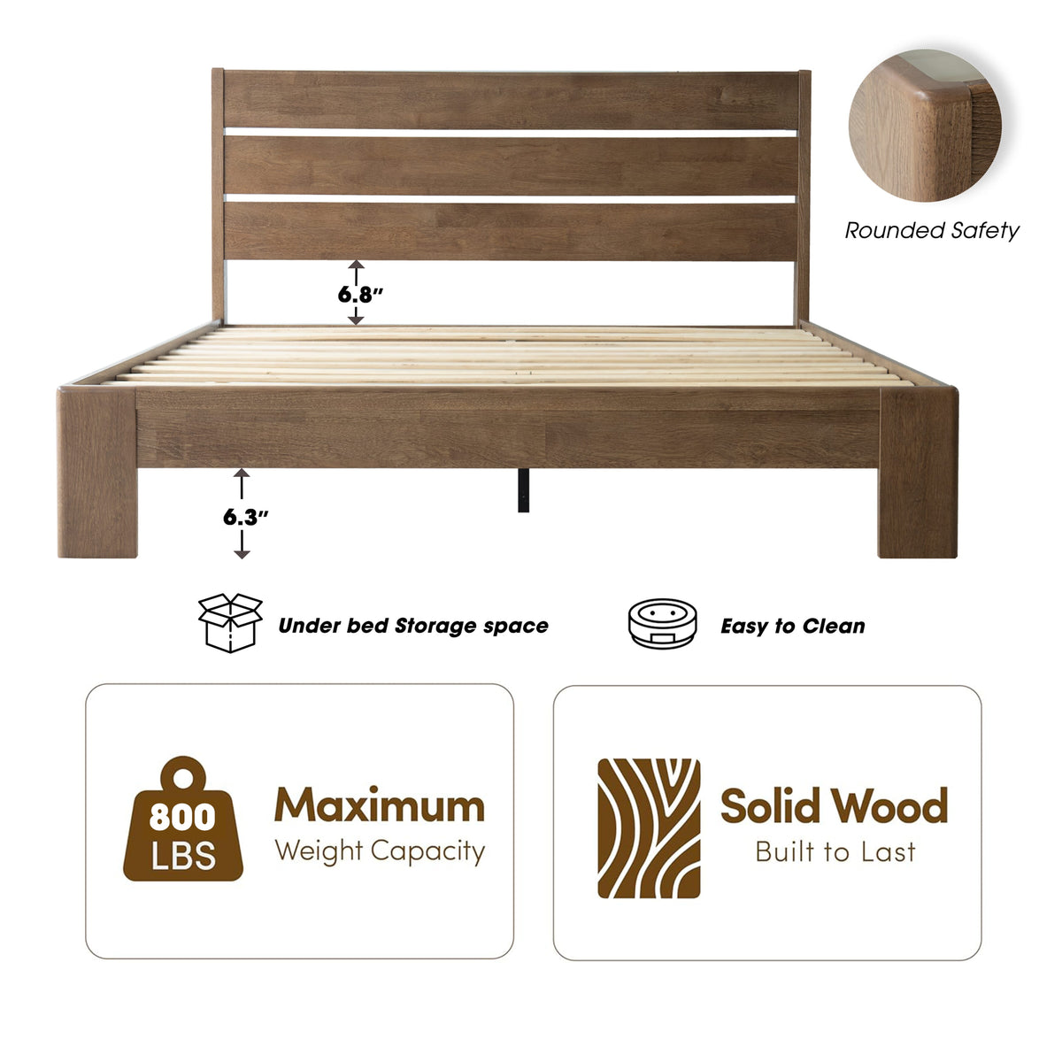 Bring warmth, charm, and durability to your bedroom with the Quimby Queen Size Platform Bed Frame by East West Furniture. Expertly crafted from 100% solid Para wood, this bed frame combines lasting strength with natural beauty and timeless design. The Ergonomic Ladder Panel headboard enhances the modern aesthetic while adding a touch of rustic character that blends effortlessly with both classic and contemporary interiors. Finished in a stunning Barnwood tone, it beautifully showcases the natural wood grain, creating a cozy and inviting atmosphere. Built for stability and comfort, the platform bed includes 12 heavy-duty wooden slats reinforced with metal legs, providing strong, noise-free, and slip-resistant support for up to 800 lbs - no box spring required. The 6.3-inch under-bed clearance offers added storage convenience and easy cleaning access. Every element, from smooth edges to rounded corners and a fine wood finish, reflects East West Furniture’s signature craftsmanship. Simple to assemble and designed for everyday use, the Quimby Platform Bed combines solid wood strength, rustic elegance, and practical comfort to elevate your bedroom décor.
