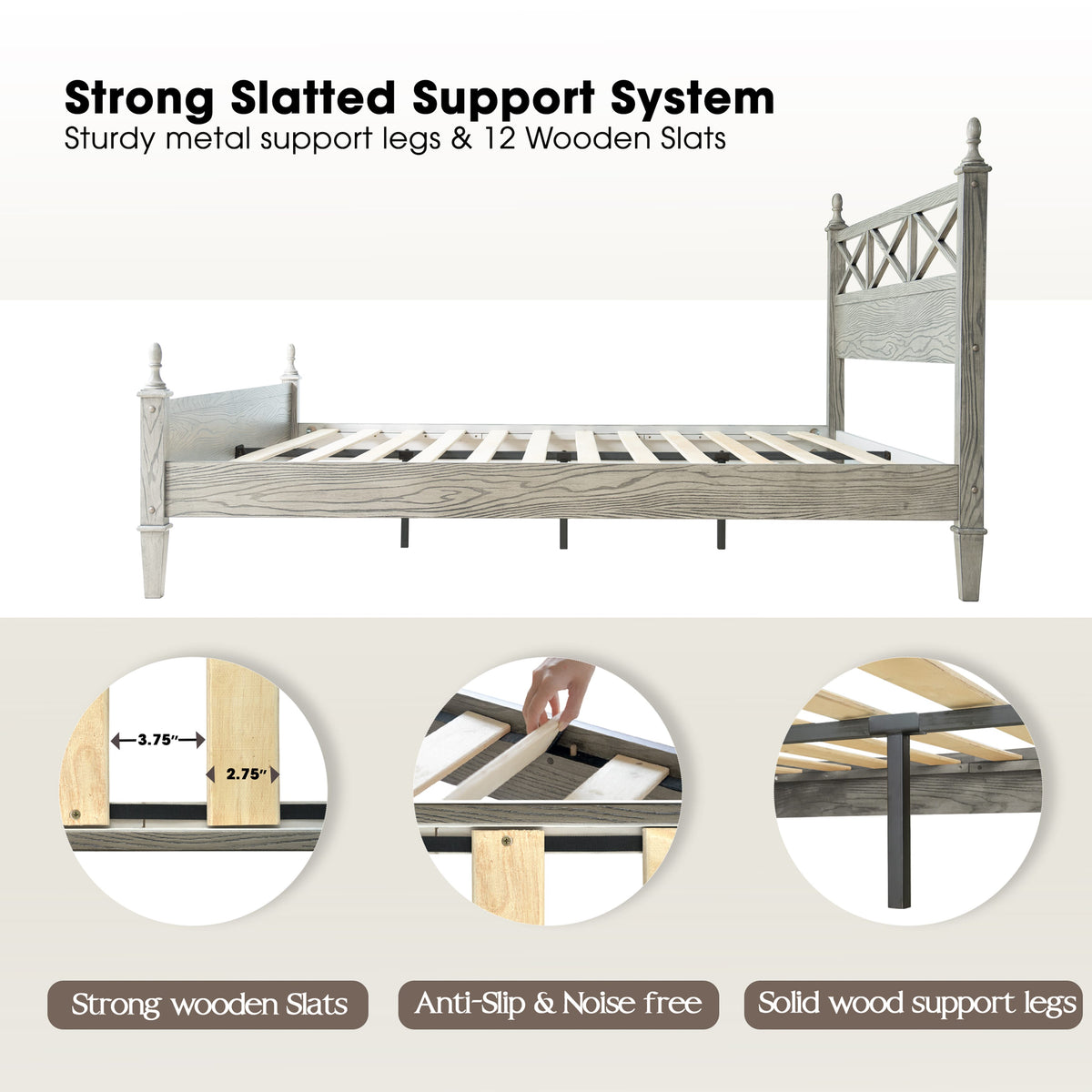 • Platform Support: 12 Wooden Slats + Reinforced Metal Legs