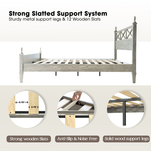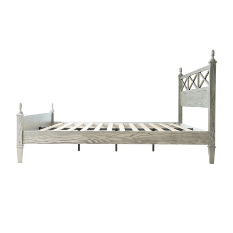 Bring a touch of rustic elegance and enduring quality to your bedroom with the Riverton King Size Bed Frame by East West Furniture. Expertly crafted from 100% solid Hevea wood (Rubberwood), this bed combines durability, functionality, and timeless design. The Weathered Gray Oak finish enhances the natural wood grain, creating a warm and sophisticated atmosphere that complements both classic and modern interiors. The beautifully designed headboard features a cross-pattern detail with turned posts, offering a refined farmhouse look that elevates any bedroom décor. Designed for strength and quiet stability, the Riverton Bed includes 12 durable wooden slats, reinforced metal support legs, and a solid wood frame that ensures a noise-free and slip-resistant foundation - no box spring required. With 8.3 inches of under-bed clearance, it provides ample space for storage or easy cleaning access. Each component - from the finely finished back panel to the smooth, rounded edges - reflects the precision craftsmanship and premium quality that define East West Furniture.