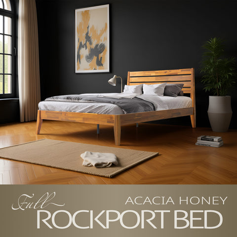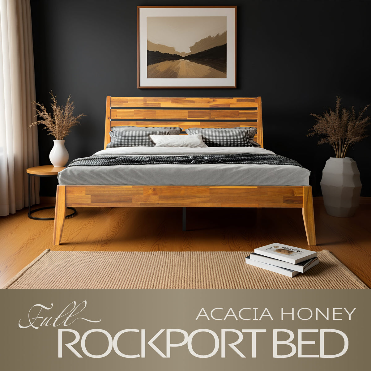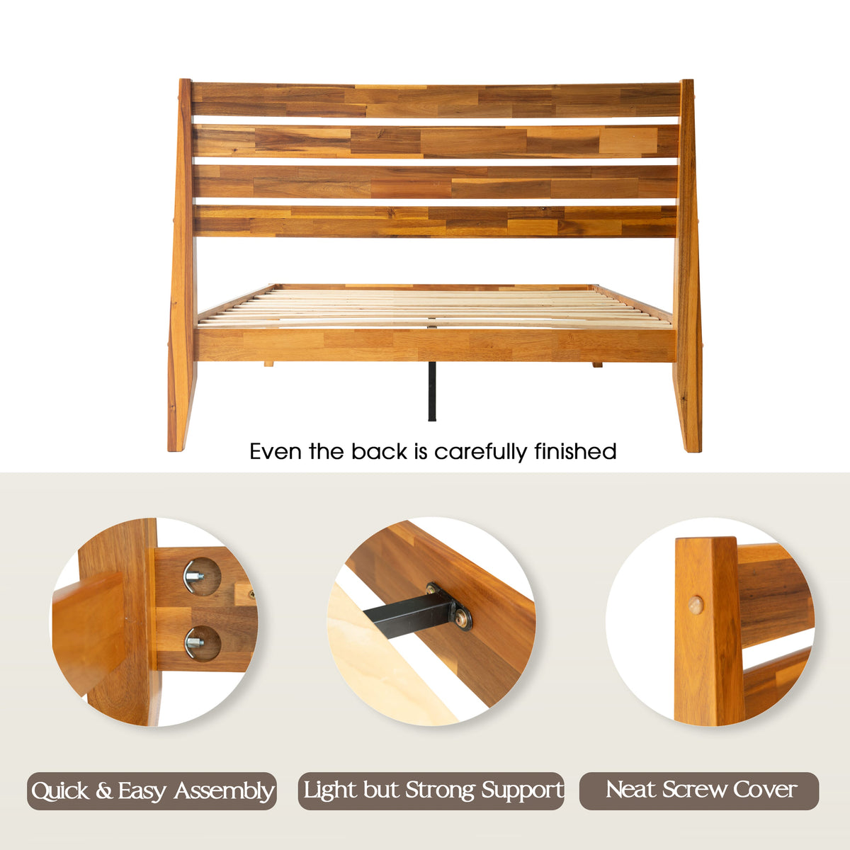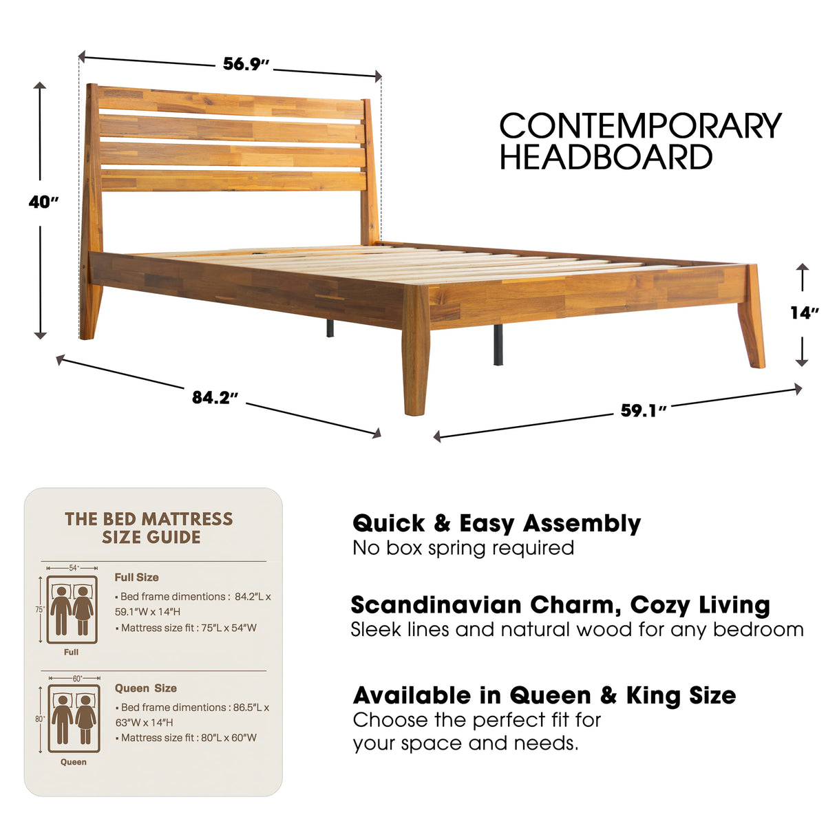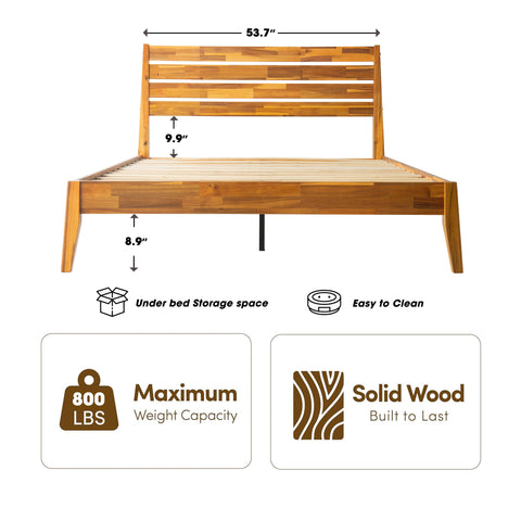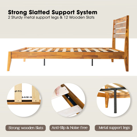 Full Size Platform Bed Frame with Solid Wood Headboard & Footboard, 12 Durable Slatted Base with Center Metal Legs, No Box Spring Needed, Anti-Noise & Slip-Free, Acacia Honey Finish, RKF-38 Sale