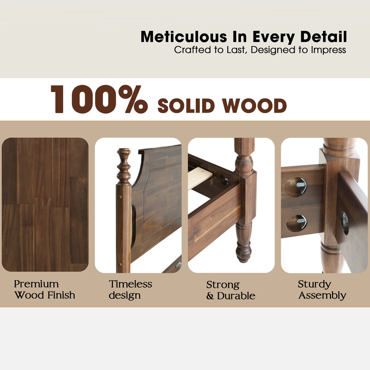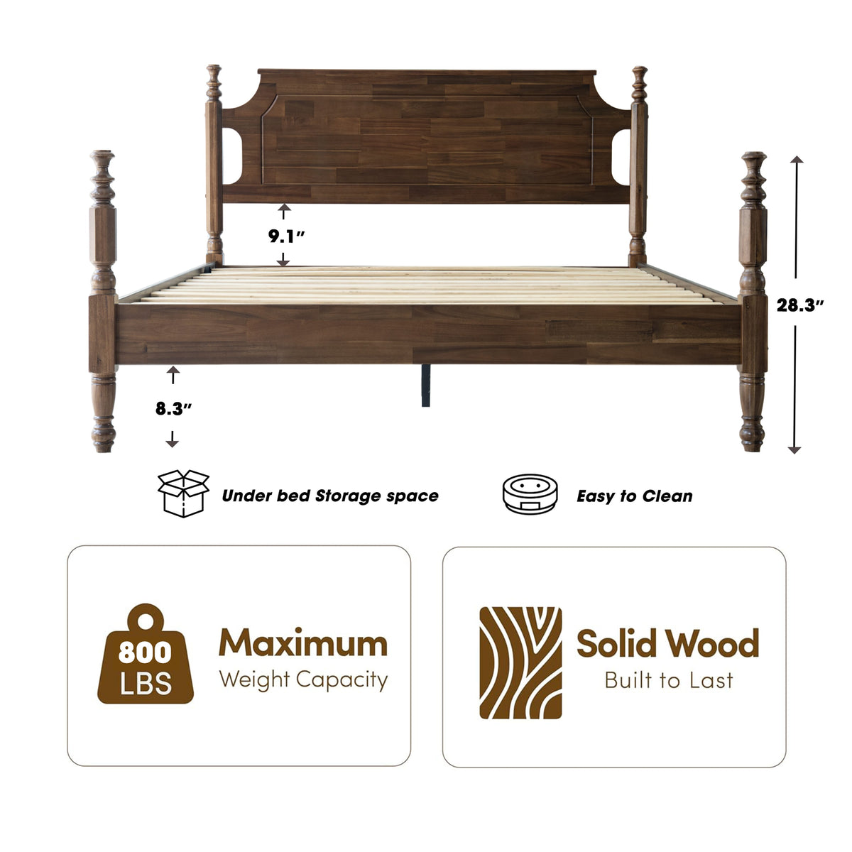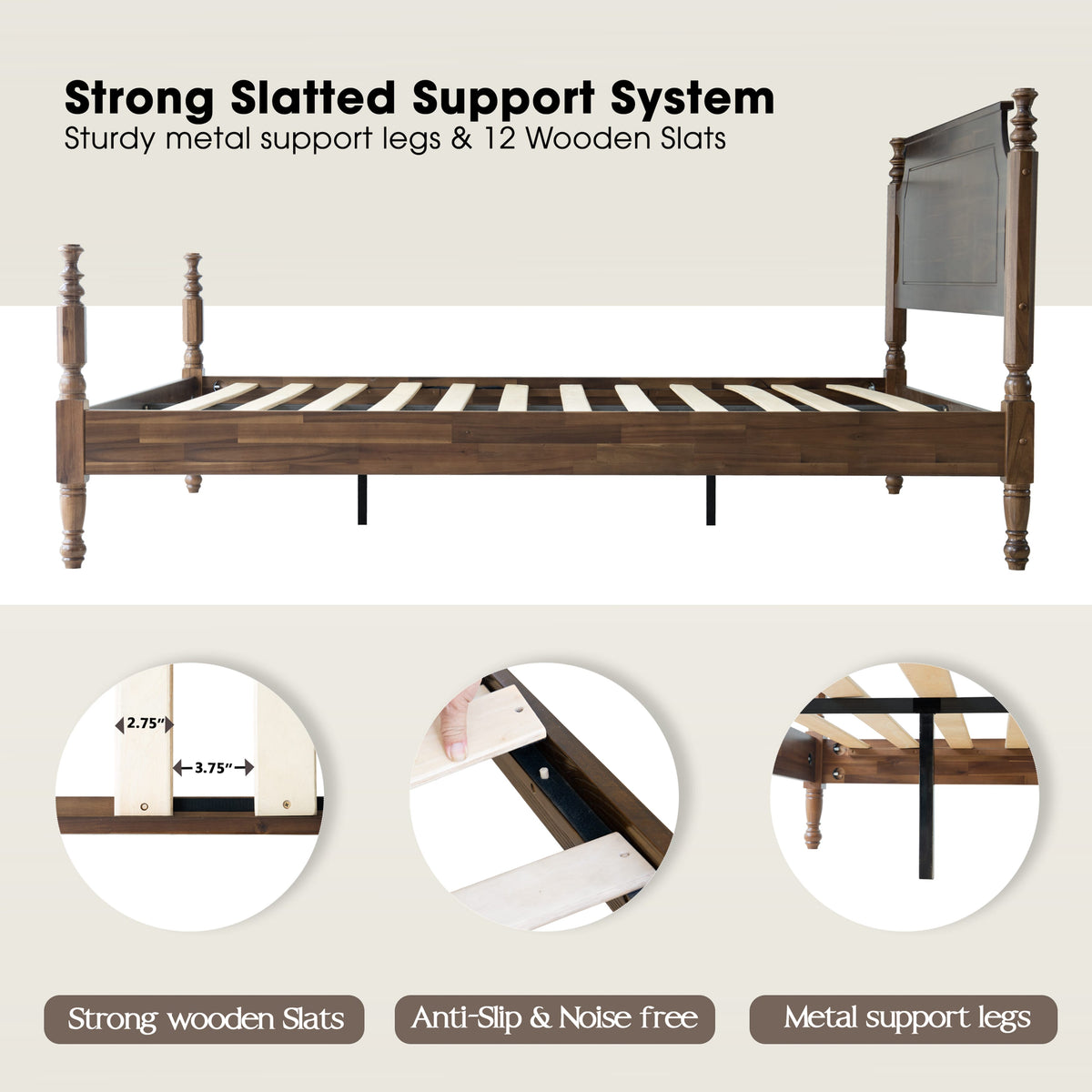 • Platform Support: 12 Durable Wooden Slats + Reinforced Metal Center Legs