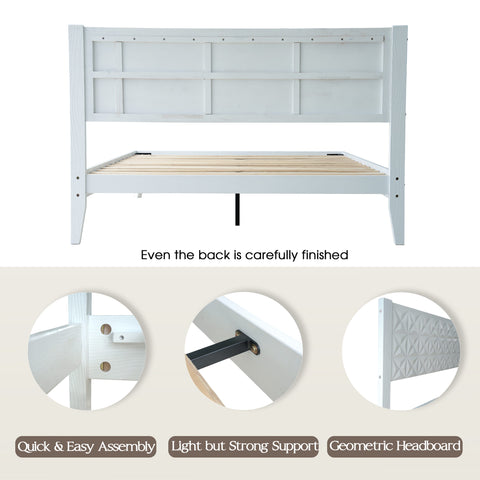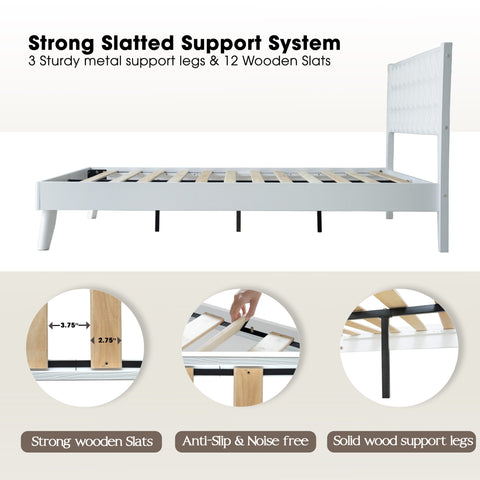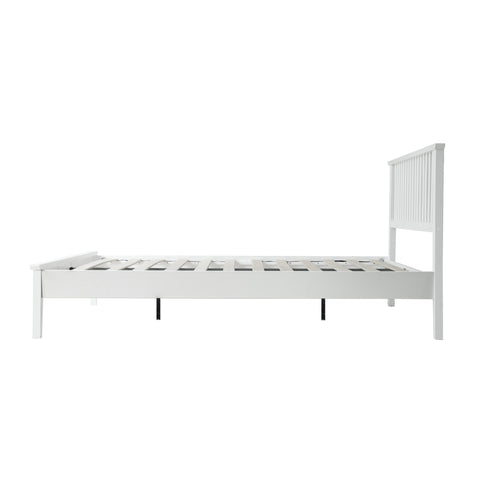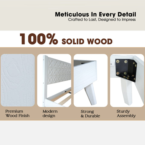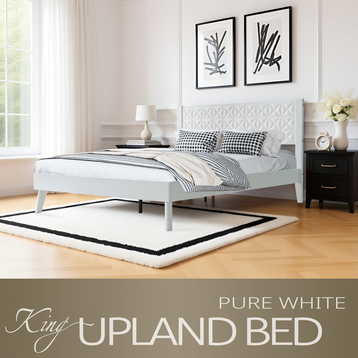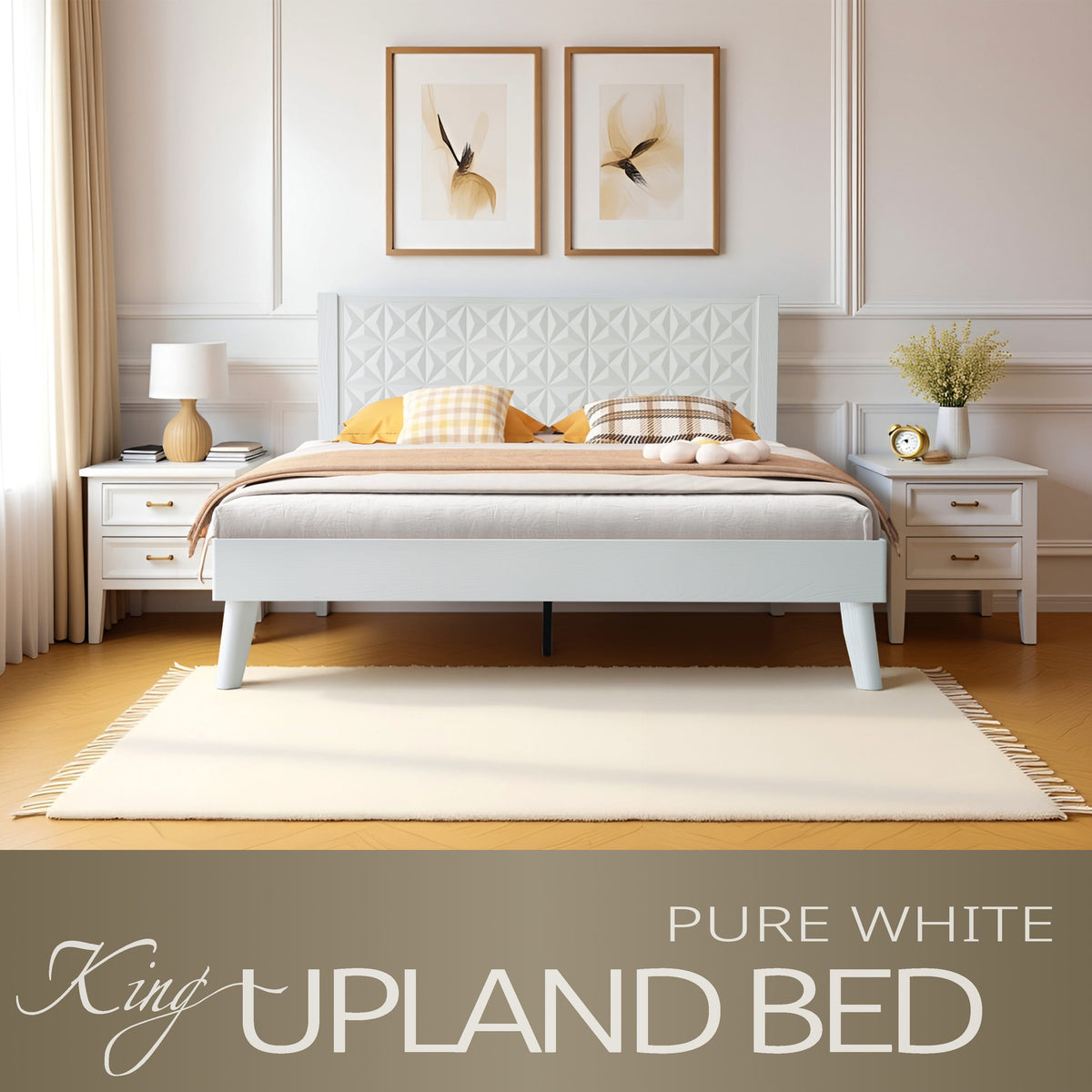 King Size Solid Wood Platform Bed Frame with Headboard & Footboard, 12 Strong Slatted Base, Central Metal Legs, Easy Assembly, Noise & Slip-Free, No Box Spring Needed, Pure White Finish, UPK-39 Sale