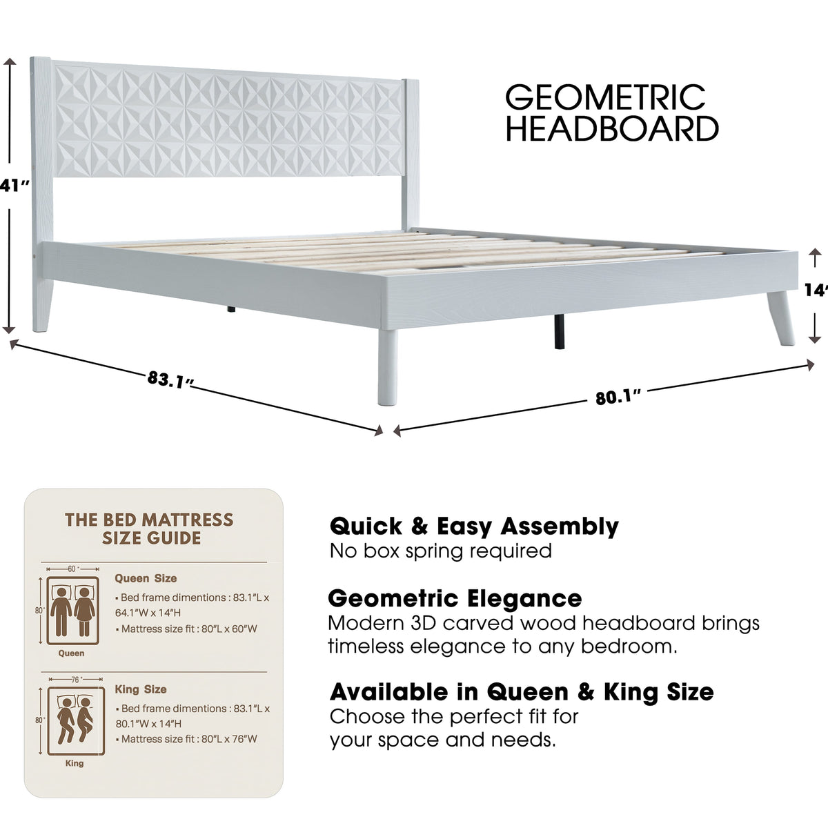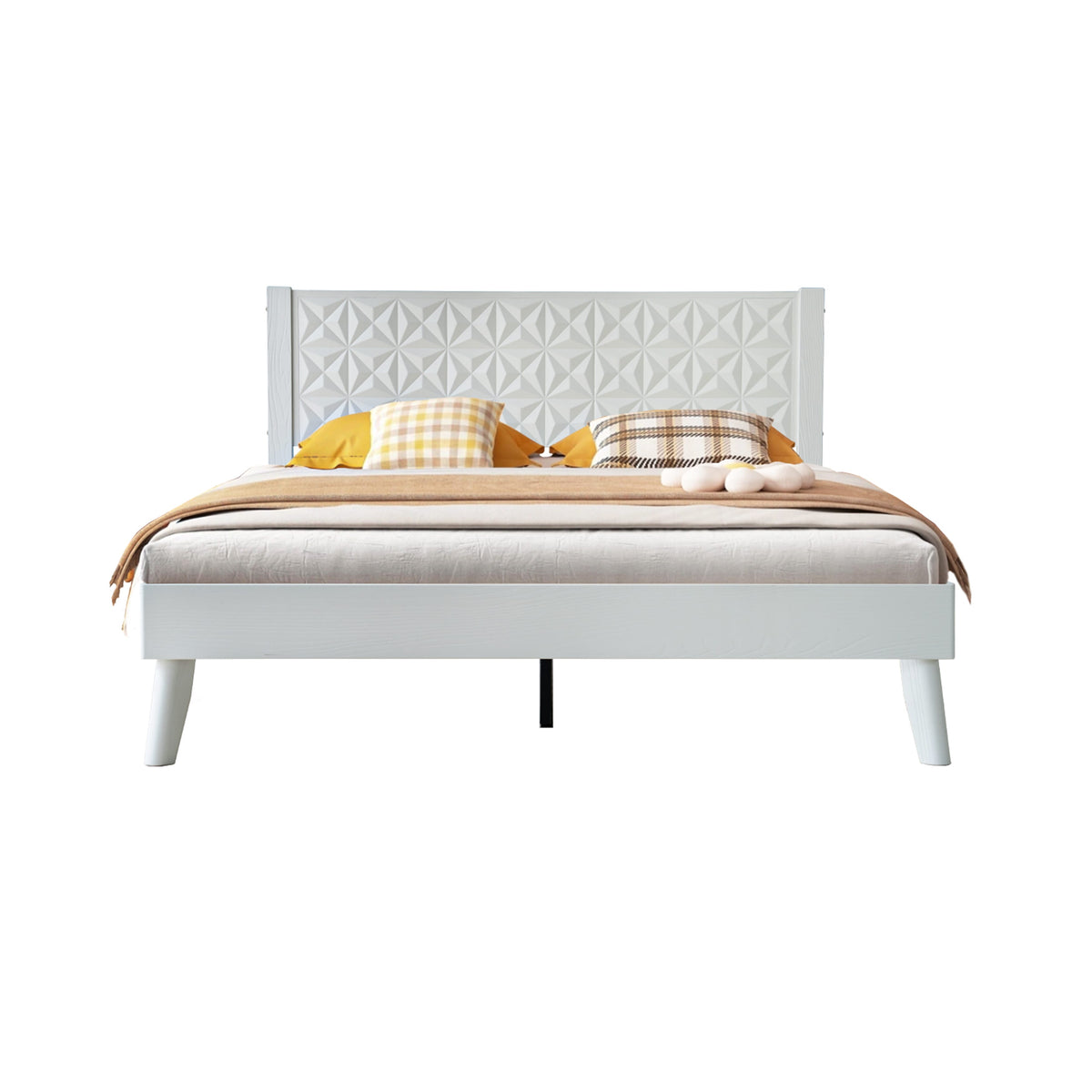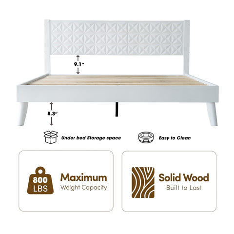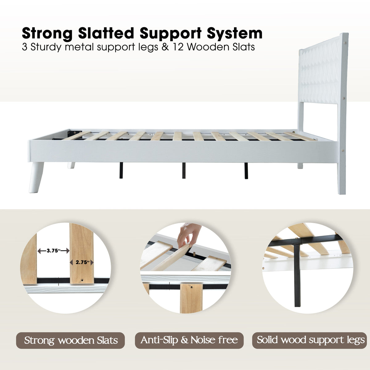 King Size Solid Wood Platform Bed Frame with Headboard & Footboard, 12 Strong Slatted Base, Central Metal Legs, Easy Assembly, Noise & Slip-Free, No Box Spring Needed, Pure White Finish, UPK-39 Sale