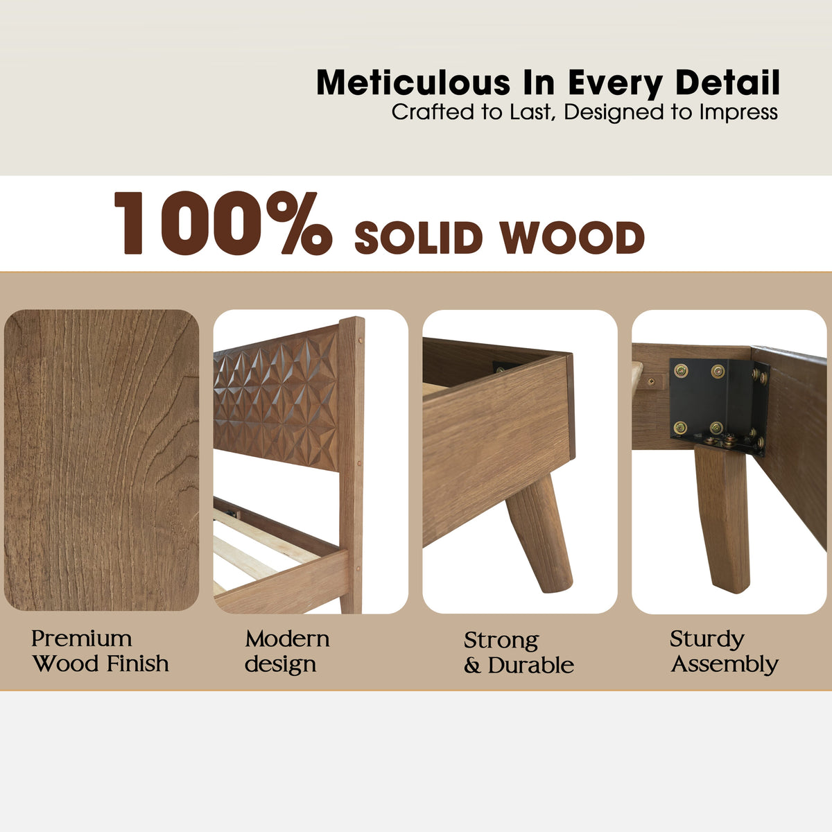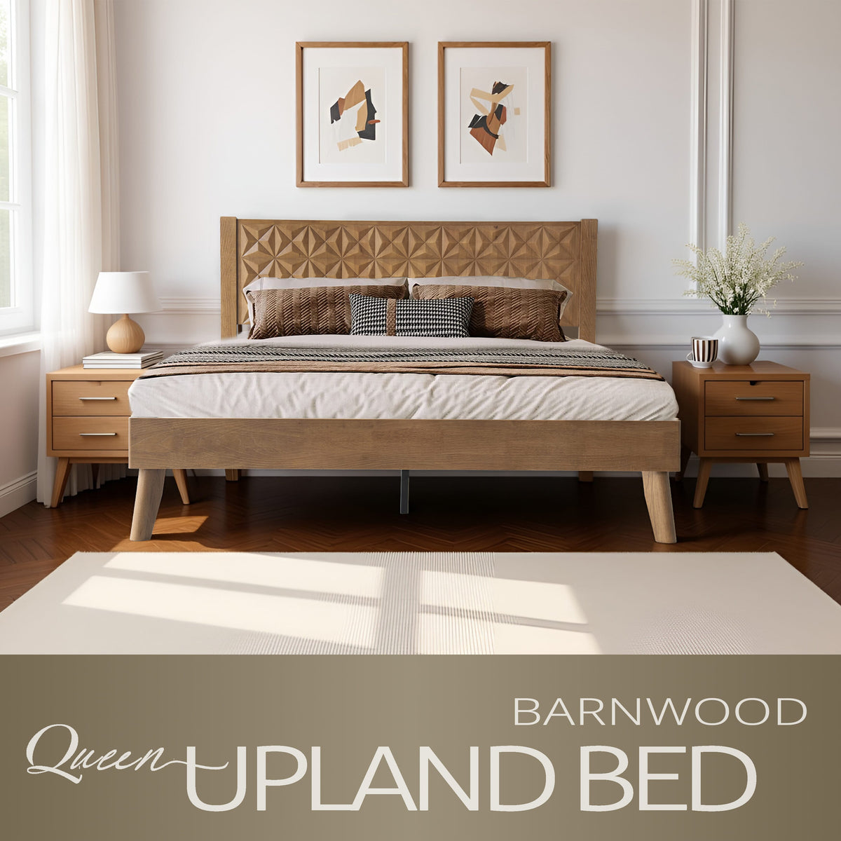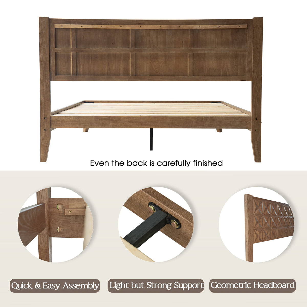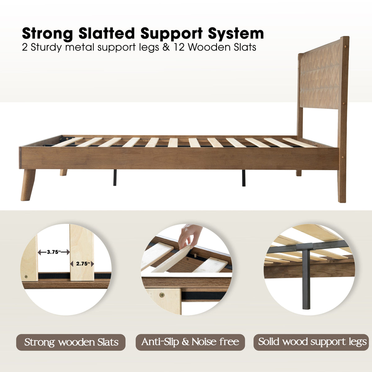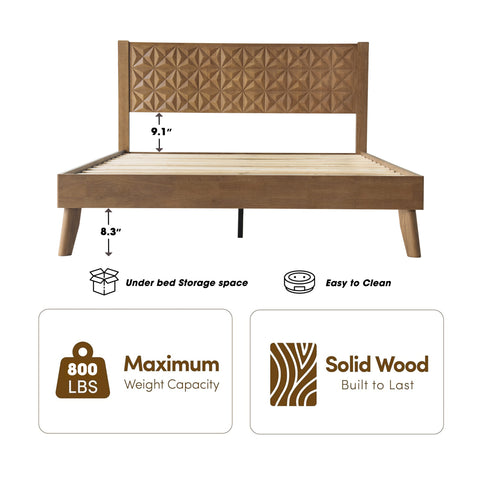 Queen Size Solid Wood Platform Bed Frame with Headboard & Footboard, Center Metal Legs, 12 Heavy-Duty Slats, Noise-Free & Anti-Slip Design, Easy Assembly, No Box Spring Needed, Barnwood Finish, UPQ-30 Sale