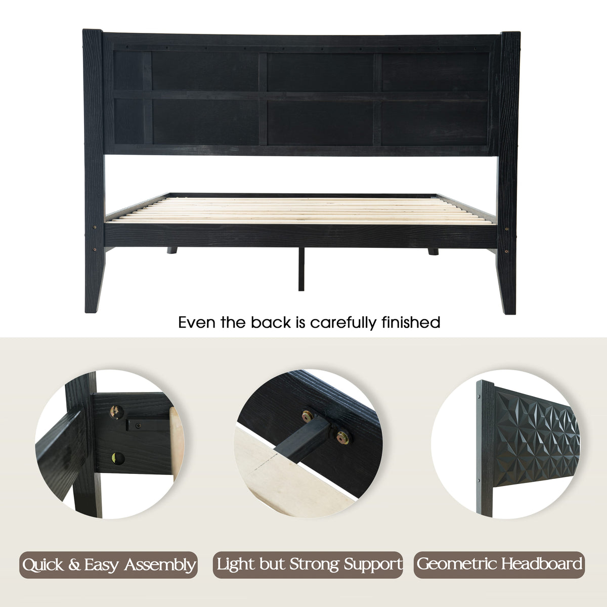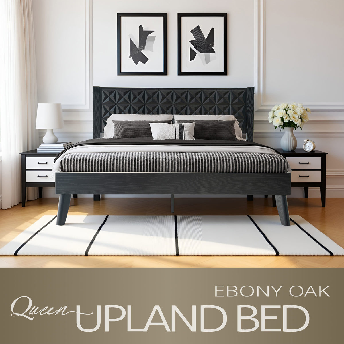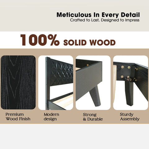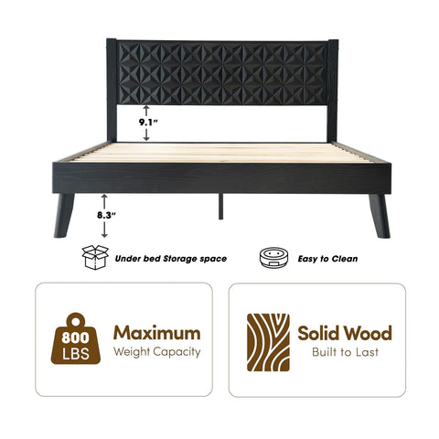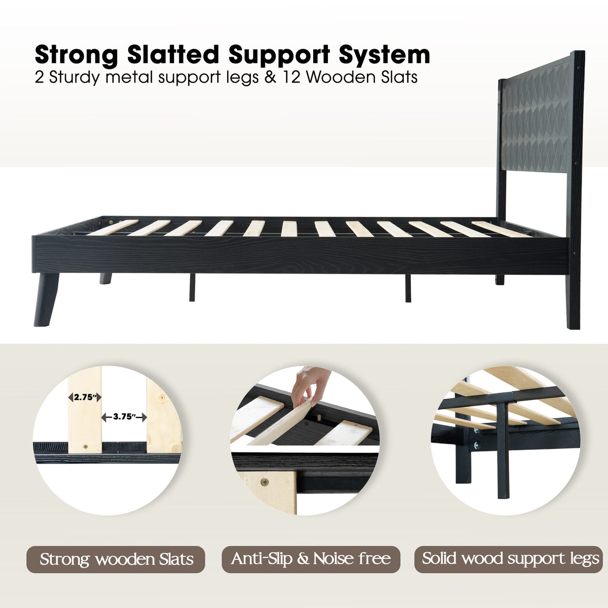 Queen Size Platform Bed Frame with Headboard & Footboard, Center Metal Legs, 12 Solid Wood Slatted Base, Easy Assembly, No Box Spring Needed, Noise-Free & Anti-Slip, Ebony Oak Finish, UPQ-35 Sale