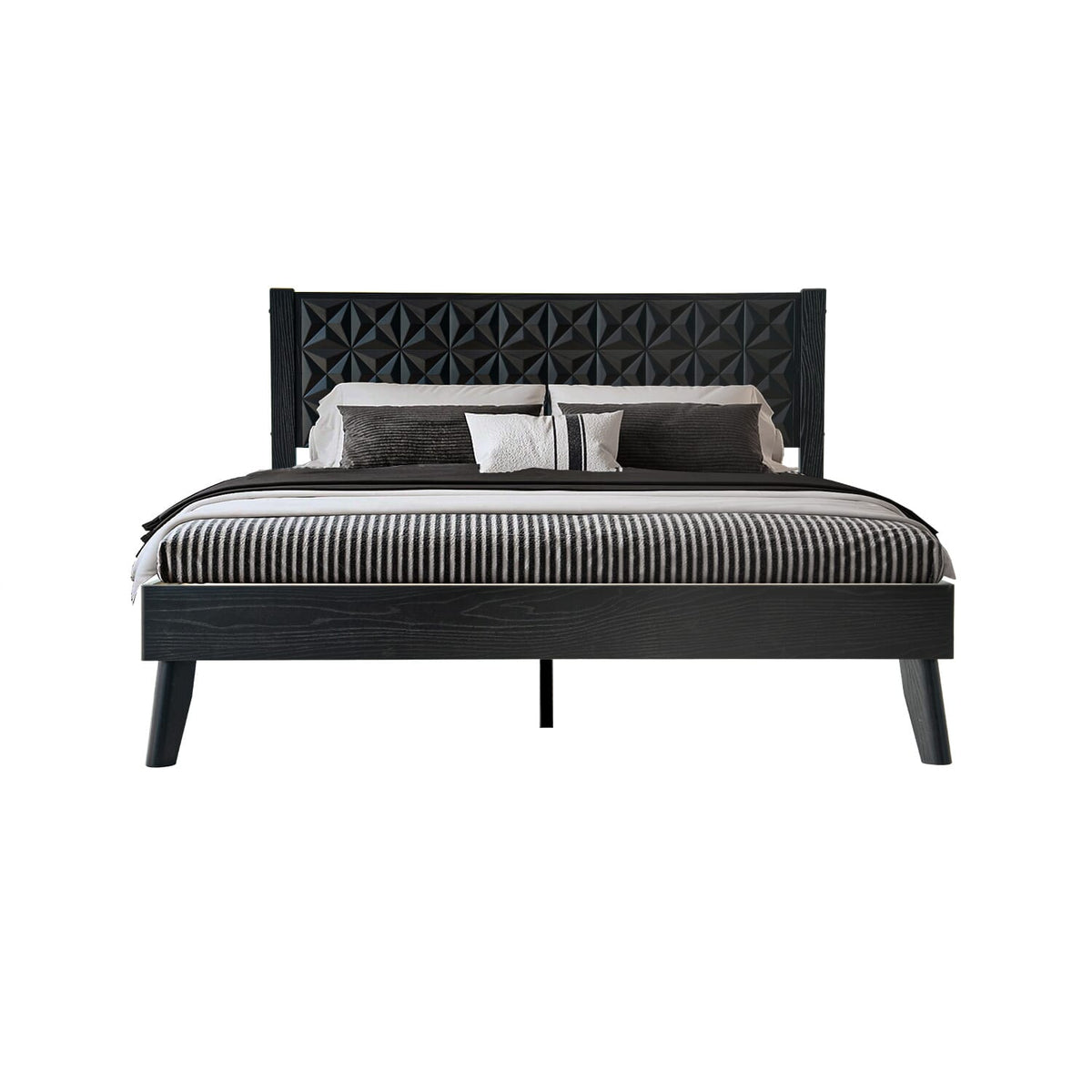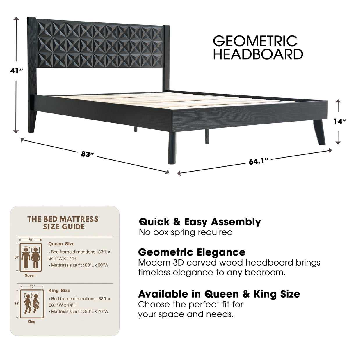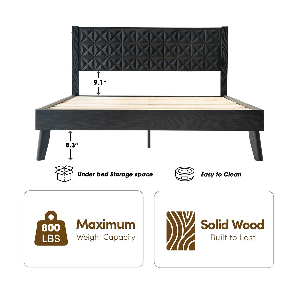 Queen Size Platform Bed Frame with Headboard & Footboard, Center Metal Legs, 12 Solid Wood Slatted Base, Easy Assembly, No Box Spring Needed, Noise-Free & Anti-Slip, Ebony Oak Finish, UPQ-35 Sale