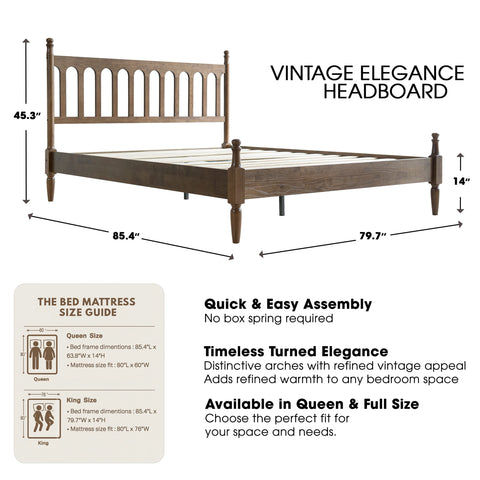 Transform your bedroom with the timeless charm and solid craftsmanship of the Wichita King Size Bed Frame. Constructed from 100% solid Hevea wood (Rubber wood), this platform bed combines exceptional strength with a naturally elegant appearance. The smooth Barnwood finish and vintage-style headboard and footboard bring a warm, rustic appeal that suits a variety of interior designs. The Wichita Bed Frame features 12 sturdy wooden slats and reinforced metal center legs, providing remarkable durability, superior stability, and a weight capacity of up to 800 lbs. Its anti-slip design and noise-free construction ensure a peaceful, comfortable night’s rest without requiring a box spring. The 9.6-inch clearance under the bed provides convenient storage space for boxes, luggage, or other essentials while keeping your room tidy and easy to clean. Designed with precision and care, this platform bed showcases East West Furniture’s dedication to quality, featuring smooth edges, screw covers, and a beautifully finished back. Assembly is simple and quick, and the bed’s robust structure ensures years of reliable use.