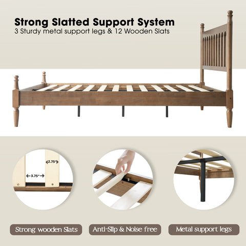 • Platform Support: 12 Durable Wooden Slats + Metal Center Legs
