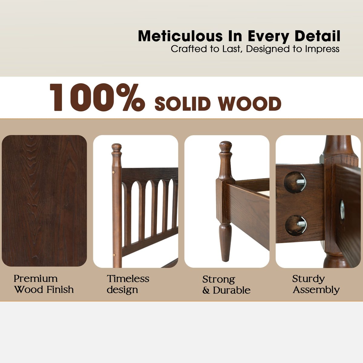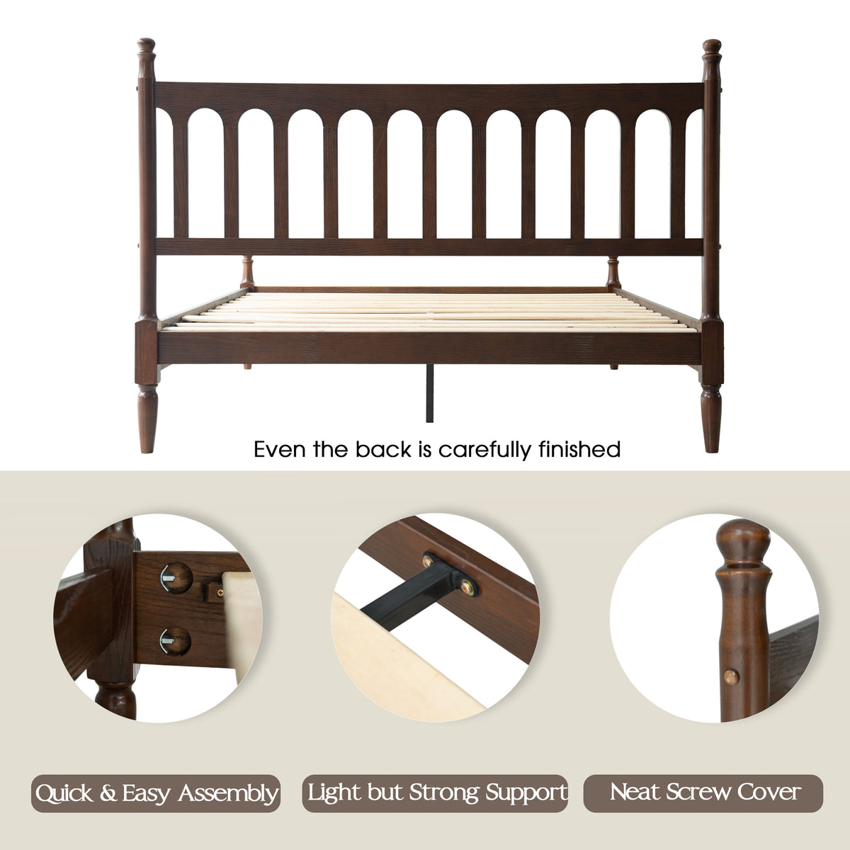• Platform Support: 12 Durable Wooden Slats + Metal Center Legs