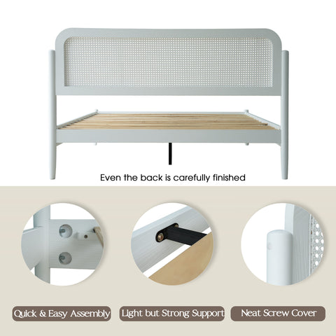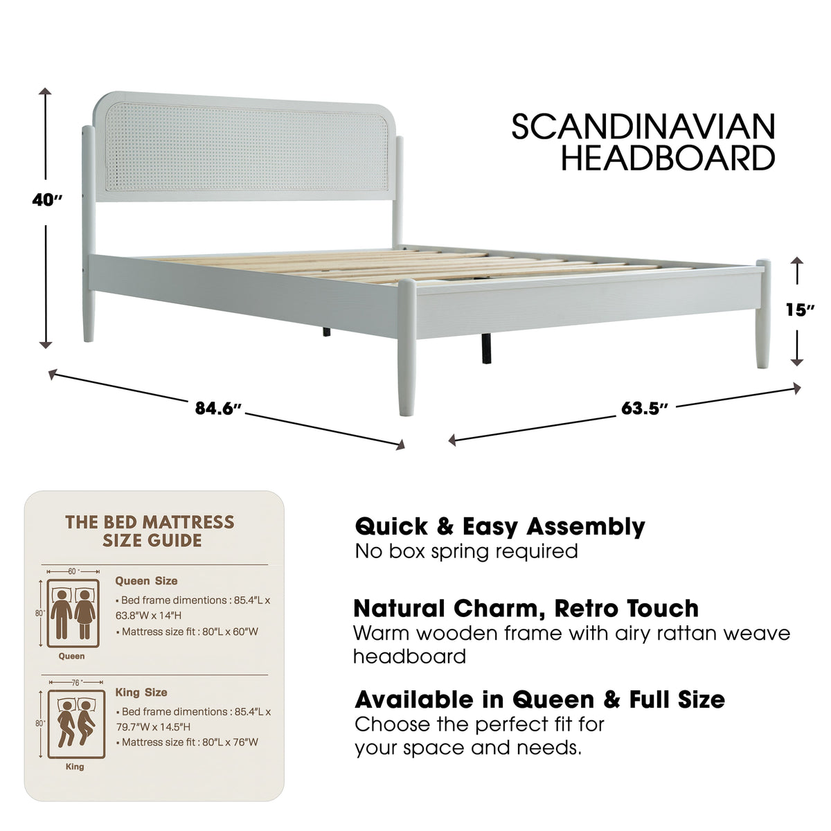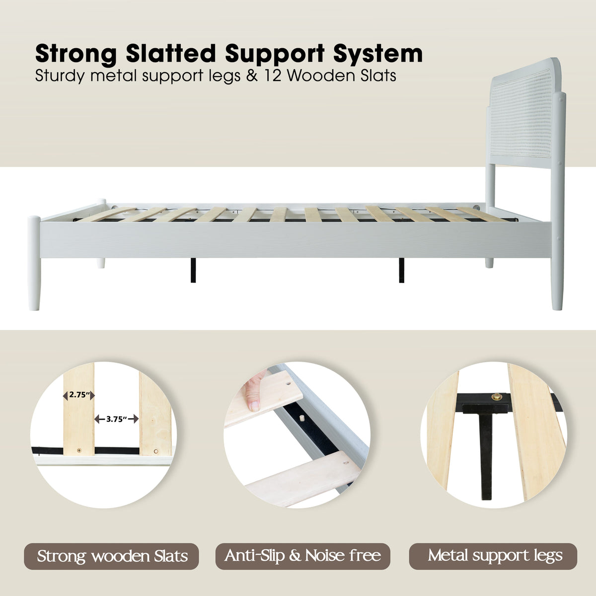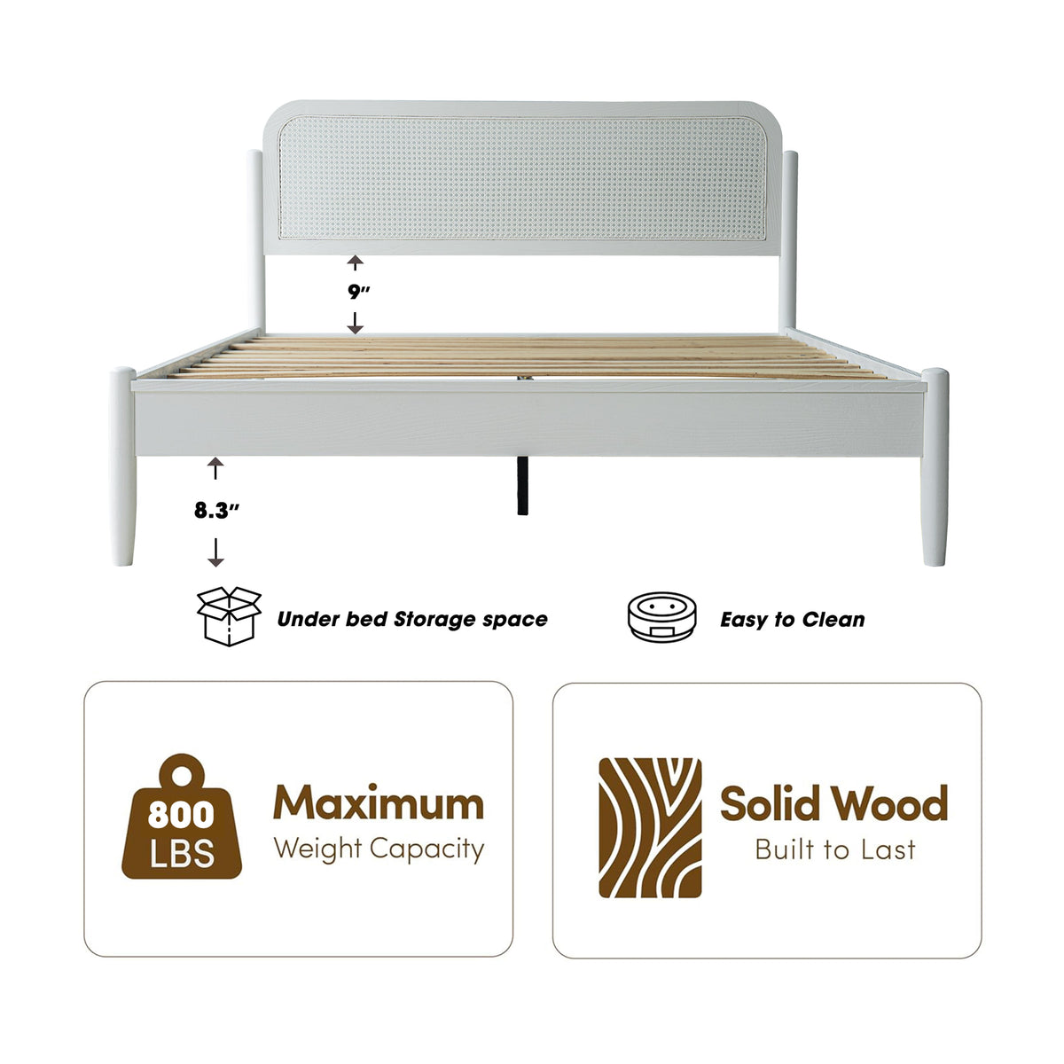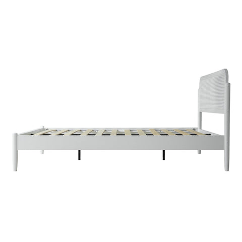 Queen Size Platform Bed Frame, Solid Wood Headboard & Footboard, Central Metal Legs with 12 Durable Slatted Base, Anti-Slip & Noise-Free, Easy Assembly, No Box Spring Needed, Pure White Finish, JMQ-39 En oferta