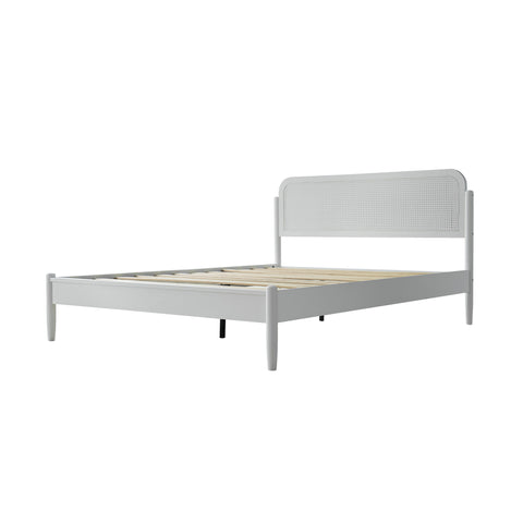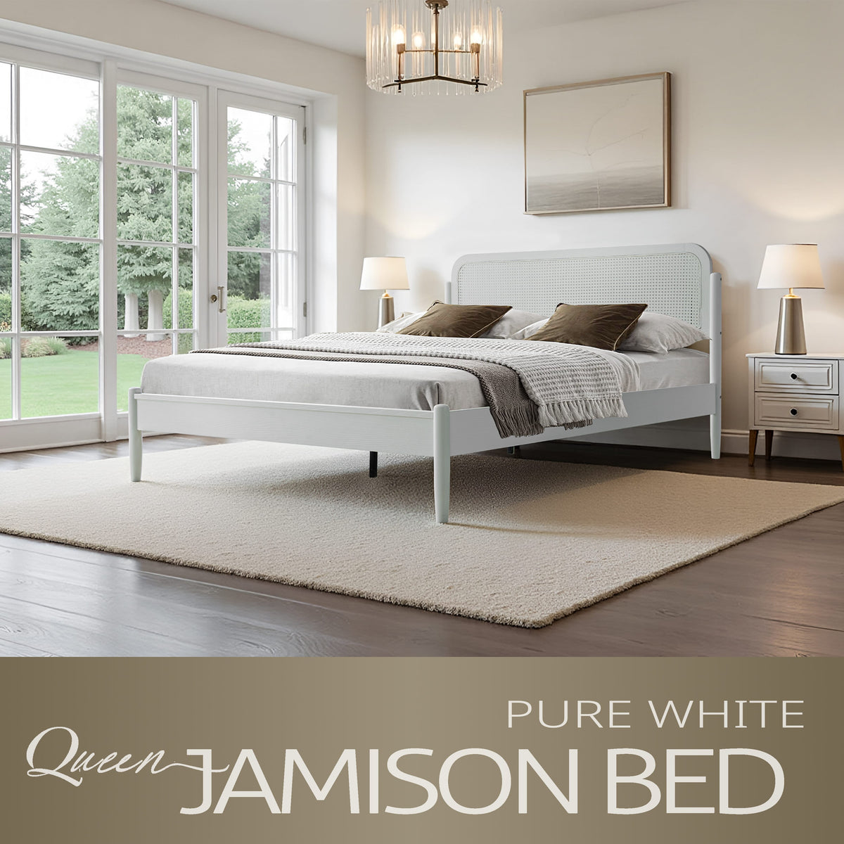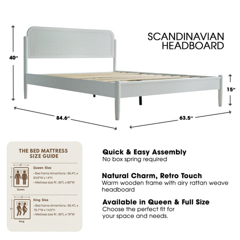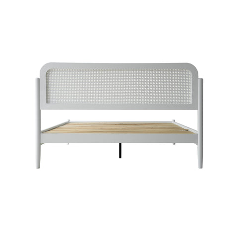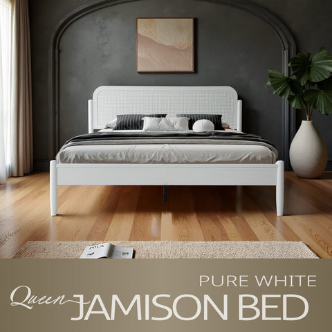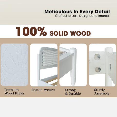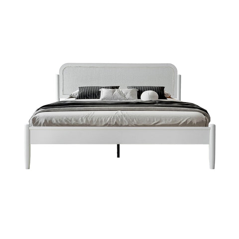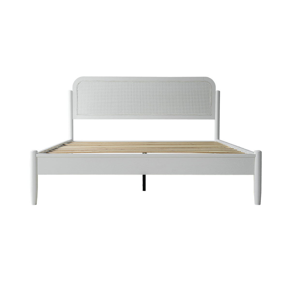 Queen Size Platform Bed Frame, Solid Wood Headboard & Footboard, Central Metal Legs with 12 Durable Slatted Base, Anti-Slip & Noise-Free, Easy Assembly, No Box Spring Needed, Pure White Finish, JMQ-39 En oferta
