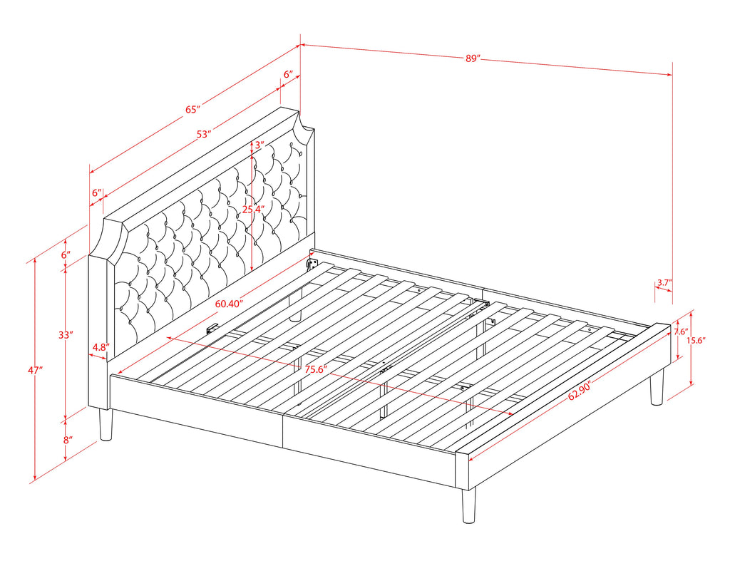 - Dimensiones de la cama moderna: Largo: 89; Ancho: 65; Alto: 47.