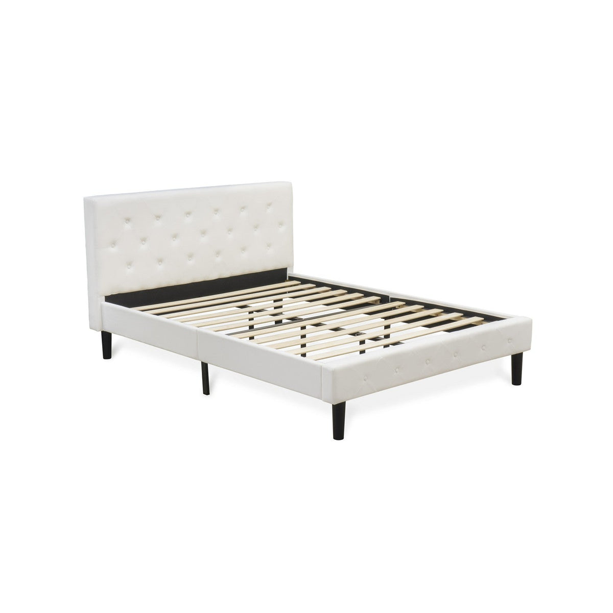 Cama de plataforma East West Furniture NLF-19-Q Nolan con cabecero y pie de cama acolchados de terciopelo blanco con botones En oferta
