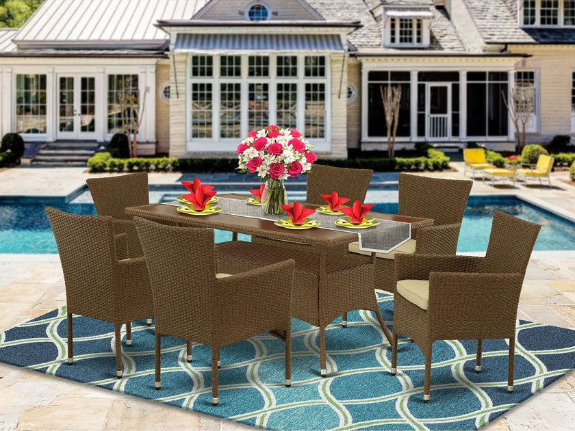 With one of our patio furniture sets, you can achieve effortless elegance and consistency. Dinner may be served in the fresh air with our bar stool patio chairs or patio dining sets.