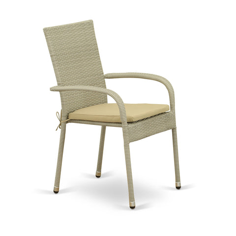 Furnish your patio dining area with this wicker patio set with a Natural finish. This 7 pc GUGU7-03A Outdoor-Furniture set includes an acacia wood top Outdoor-Furniture table and 6 single arm chairs. Constructed from a lightweight steel frame and wrapped with woven resin wicker fiber, this solid foundation weather-resistant Outdoor-Furniture set functional uses, and maximum comfortability. The all-weather table with acacia wood table top brings a sophisticated look and allows you to place snacks, drinks or decorative items. The matching armchairs with cushions are designed to provide a comfortable and relaxing lounging experience in the Outdoor-Furniture area for hours at a time. The comfortable cushions are water-resistant, dustproof, easy to clean and built to last. Either it’s an intimate gathering or a charming family dinner, this contemporary dining set delivers a great dining time experience in the fresh air with your family or friends.