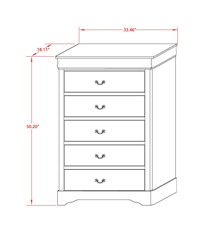 Sizes of 6 Drawer Chest: Length:59.84, Width:18.11, Height:34.45.