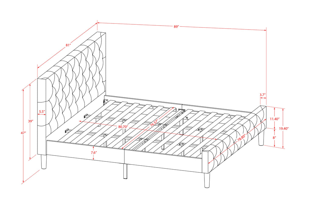 • Dimensions of Bed: Length: 89; Width: 81; Height: 47.
