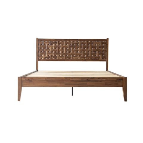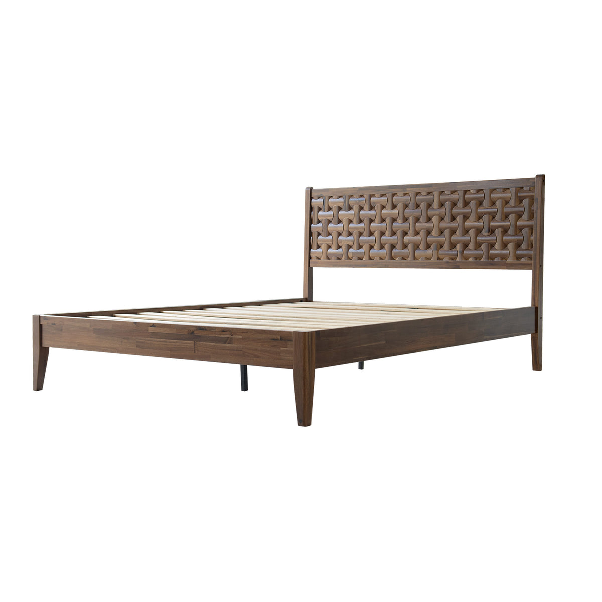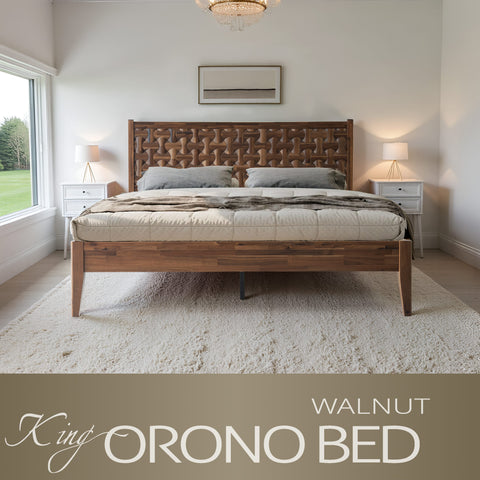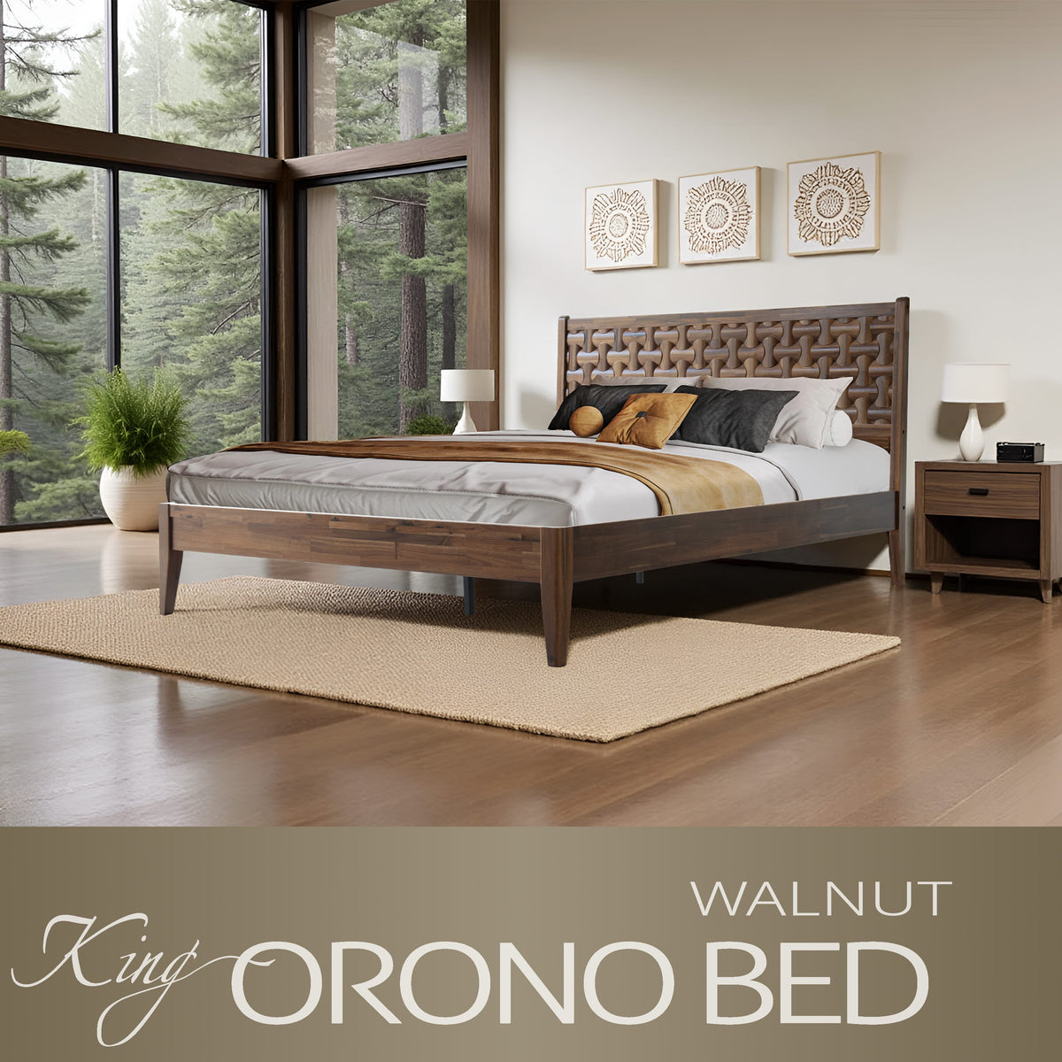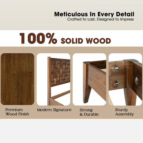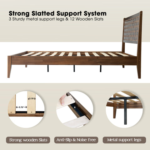 King Size Solid Wood Bed Frame with Headboard & Footboard Platform Bed, 12 Strong Slatted Base, Metal Legs, No Box Spring Needed, Easy Assembly, Anti-Slip & Noise-Free, Walnut Finish, ORK-37 Sale