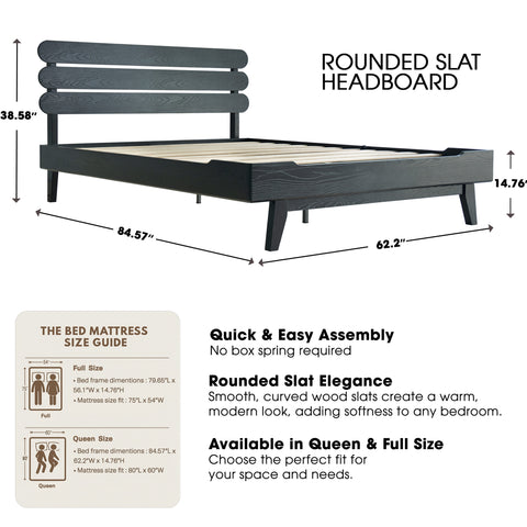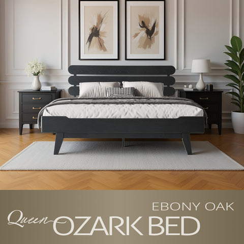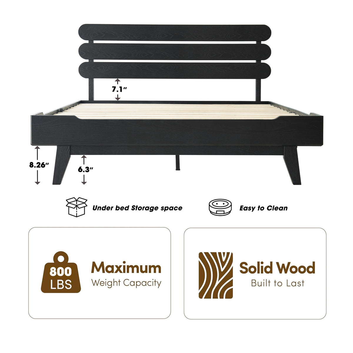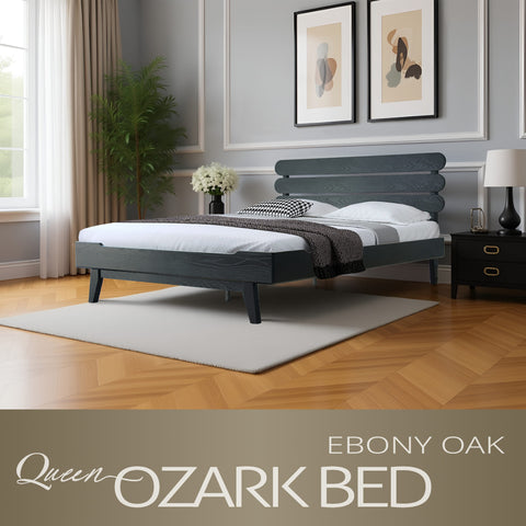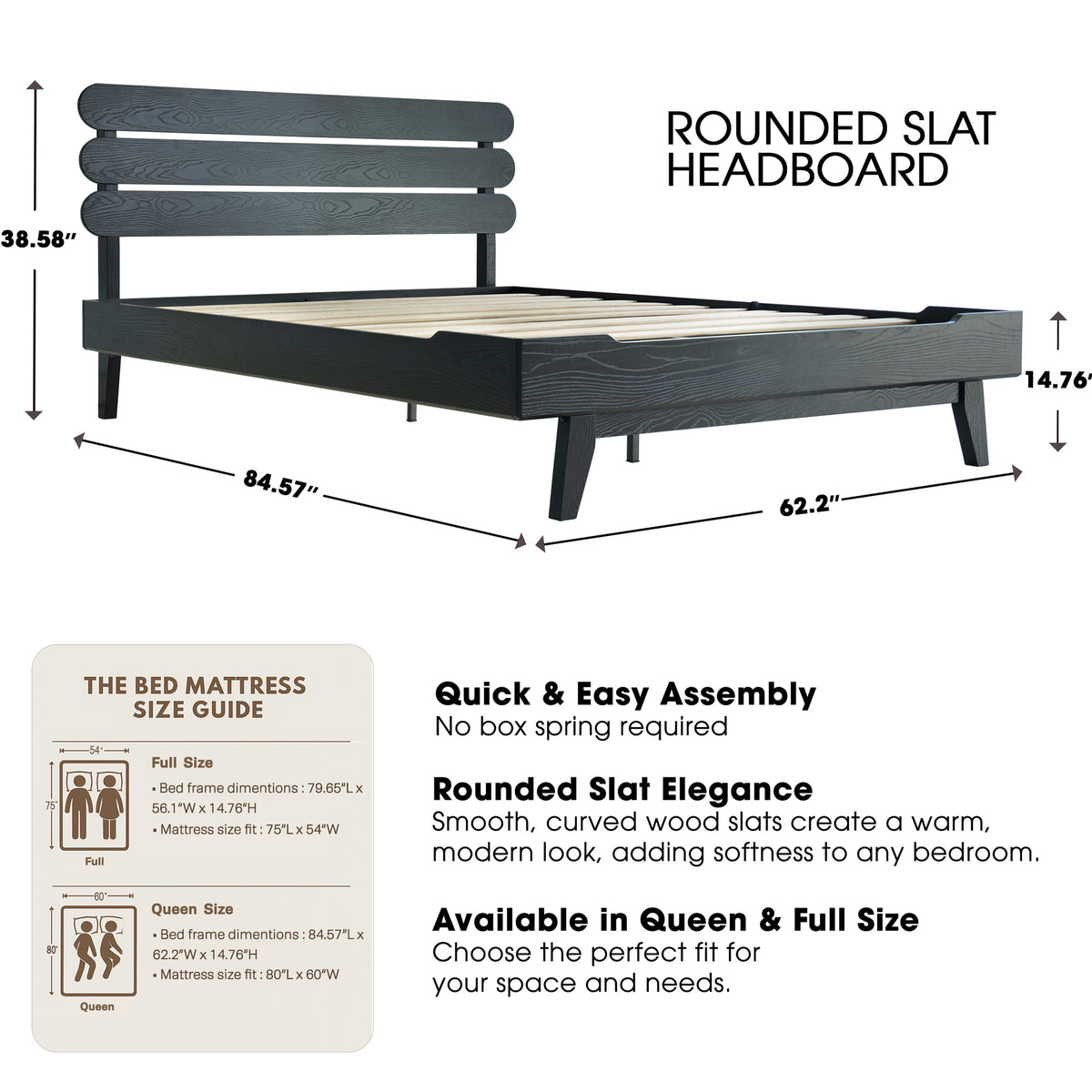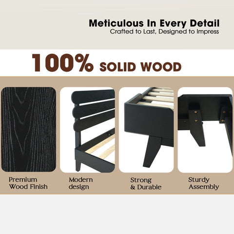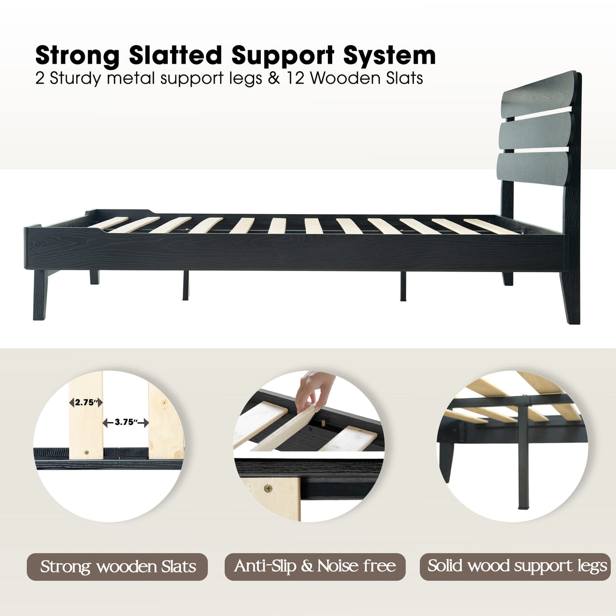 Queen Size Bed Frame with Headboard & Footboard Solid Wood Platform Bed, Center Metal Legs, 12 Sturdy Slatted Base, Easy Assembly, No Box Spring Needed, Anti-Noise & Slip-Free Ebony Oak Finish, OZQ-35 Sale