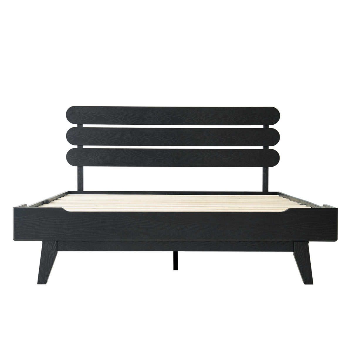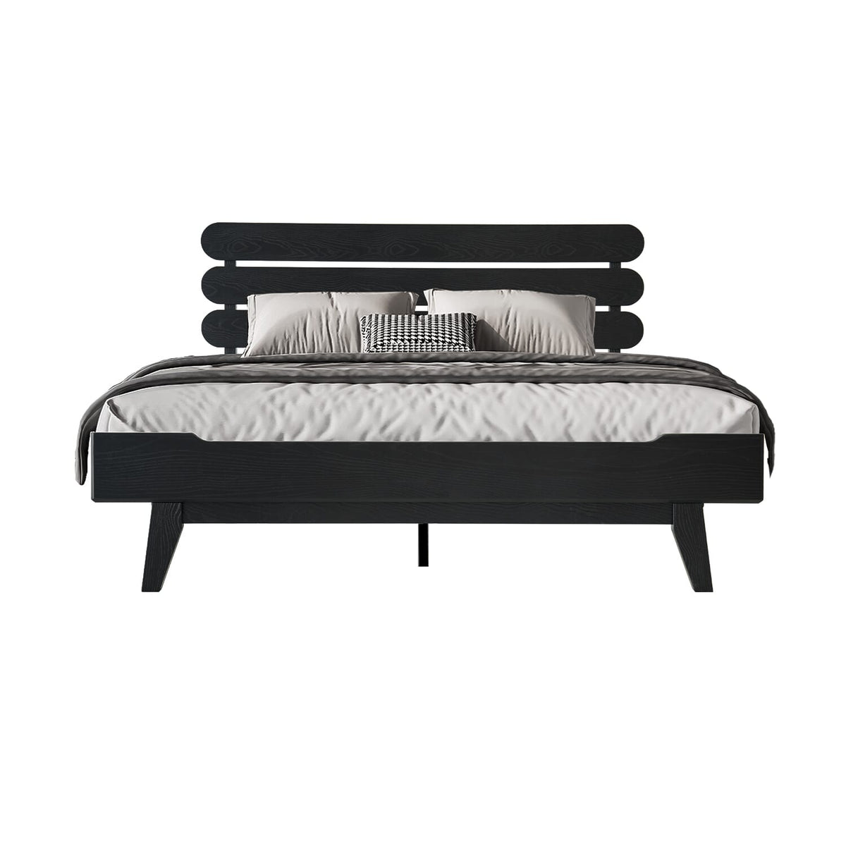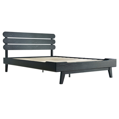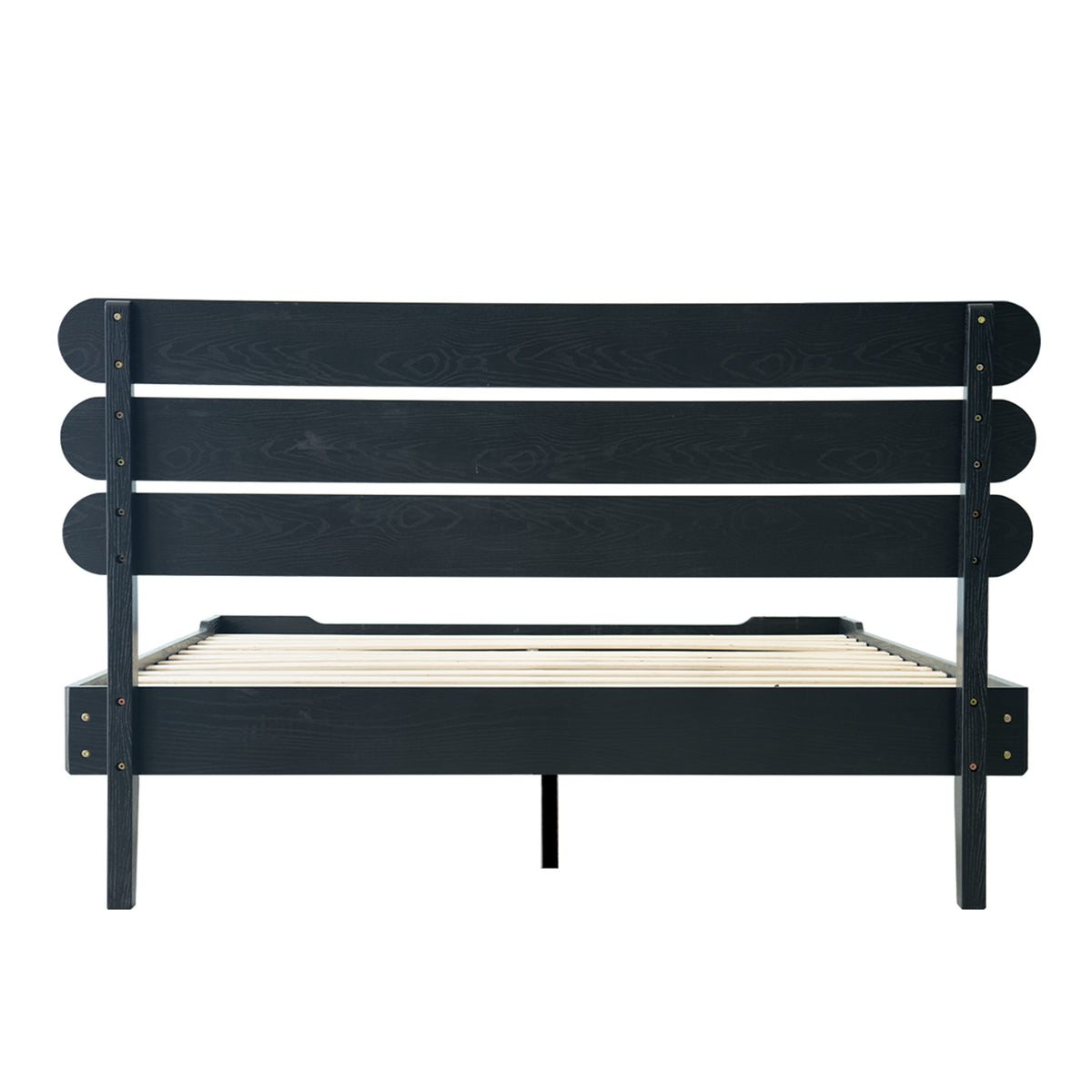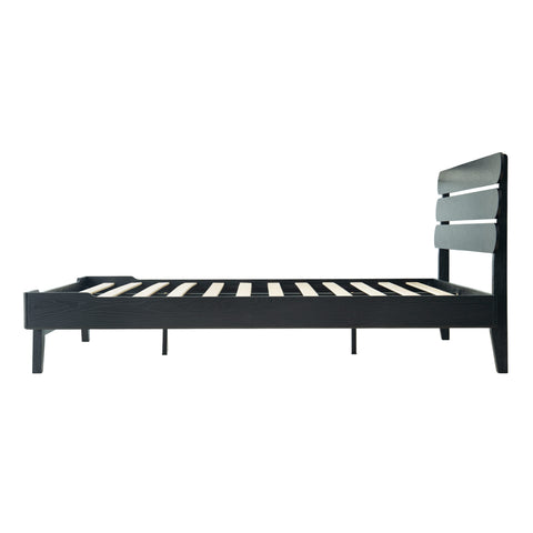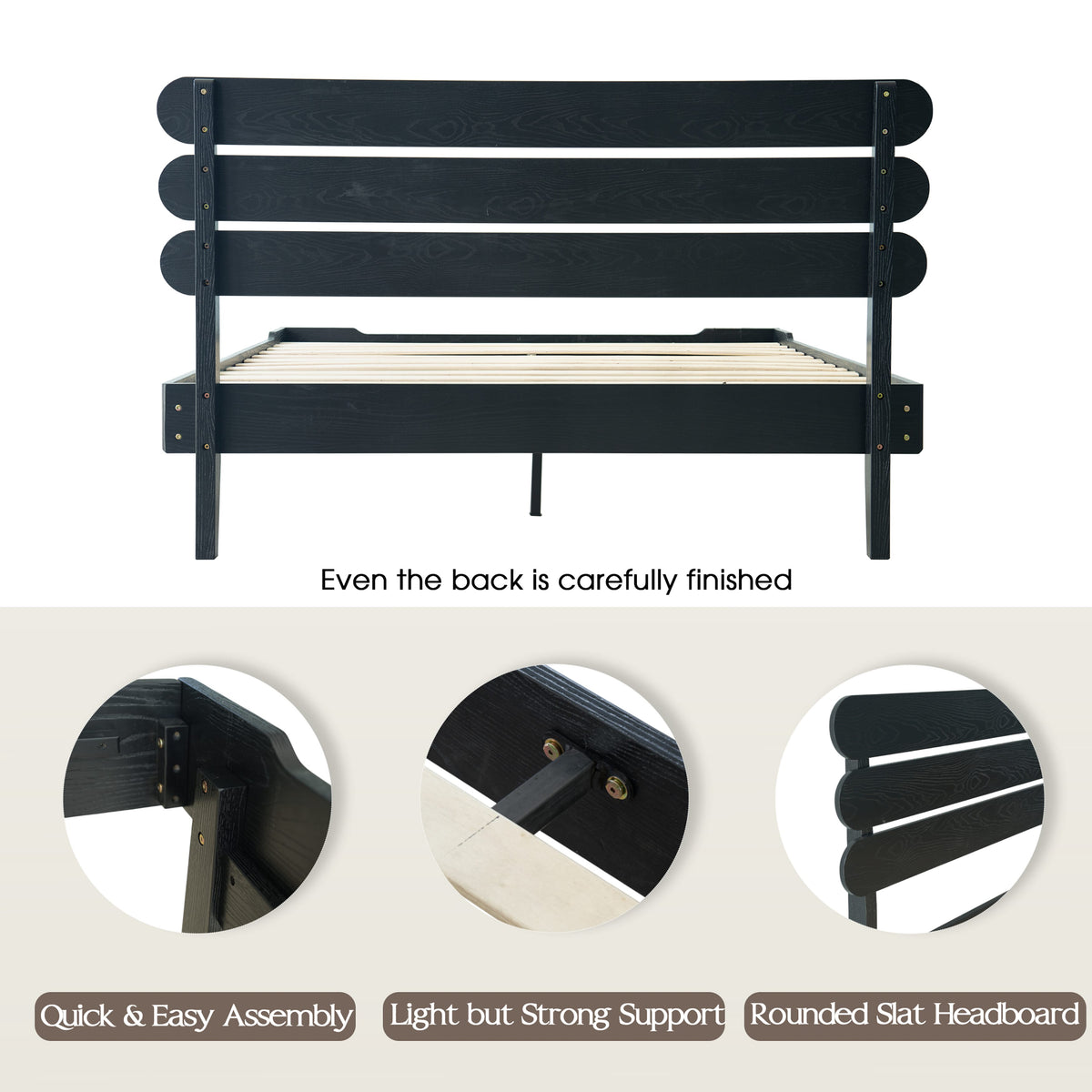 Queen Size Bed Frame with Headboard & Footboard Solid Wood Platform Bed, Center Metal Legs, 12 Sturdy Slatted Base, Easy Assembly, No Box Spring Needed, Anti-Noise & Slip-Free Ebony Oak Finish, OZQ-35 Sale