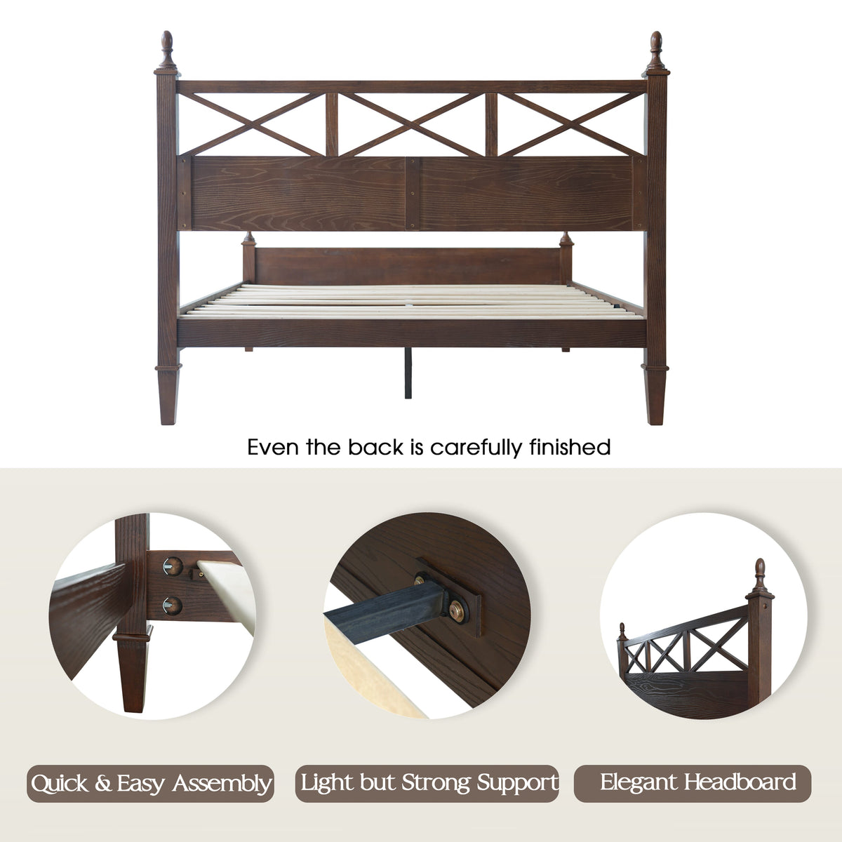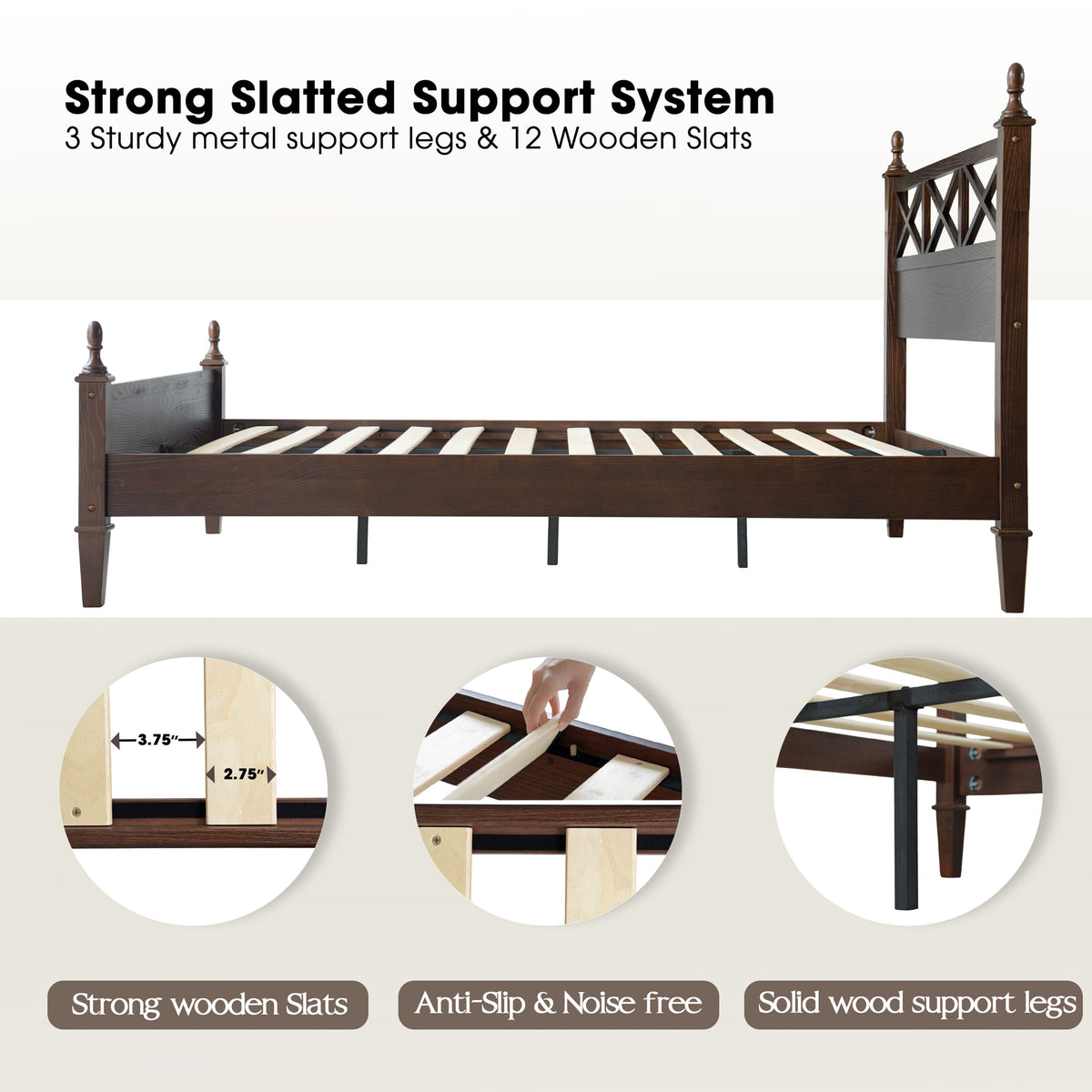 • Platform Support: 12 Wooden Slats + Reinforced Metal Legs