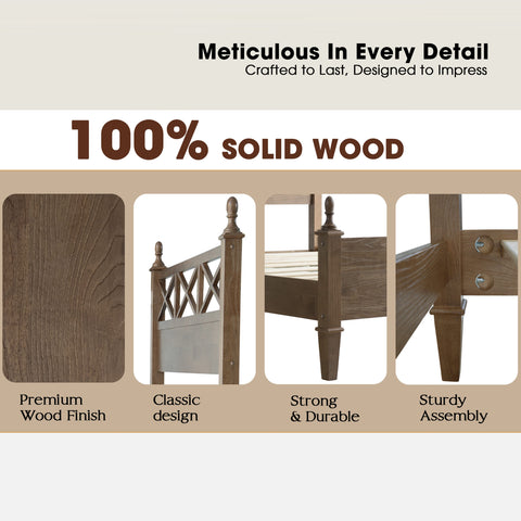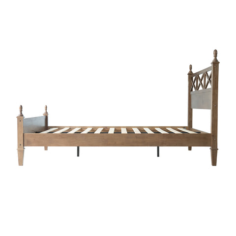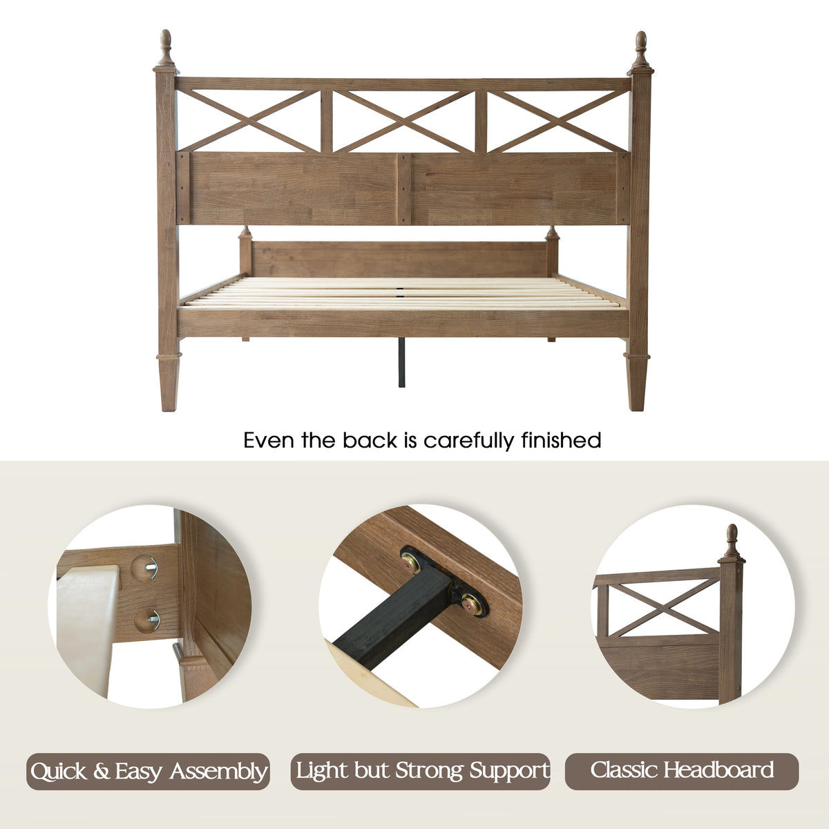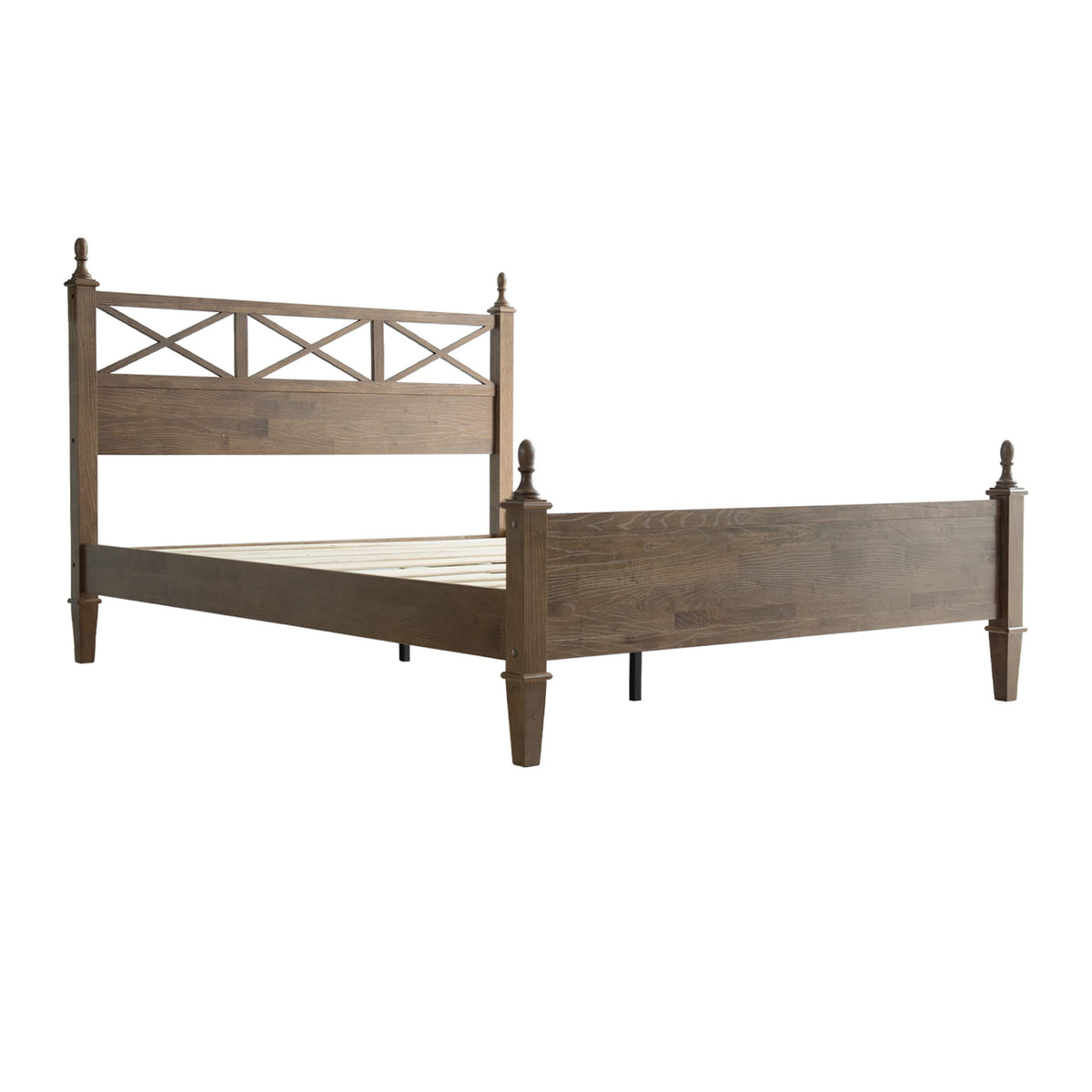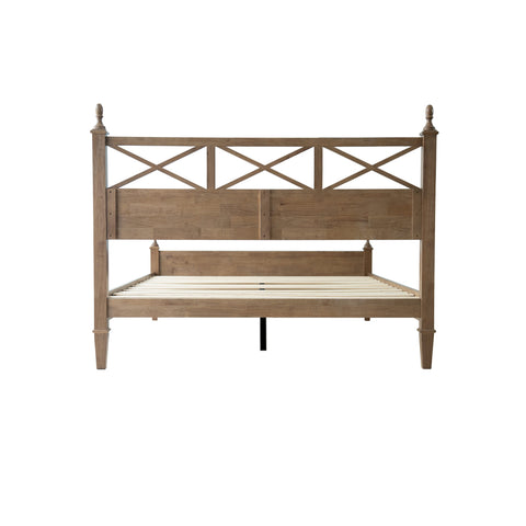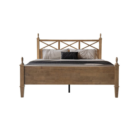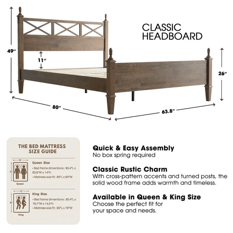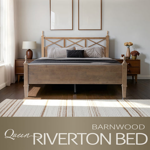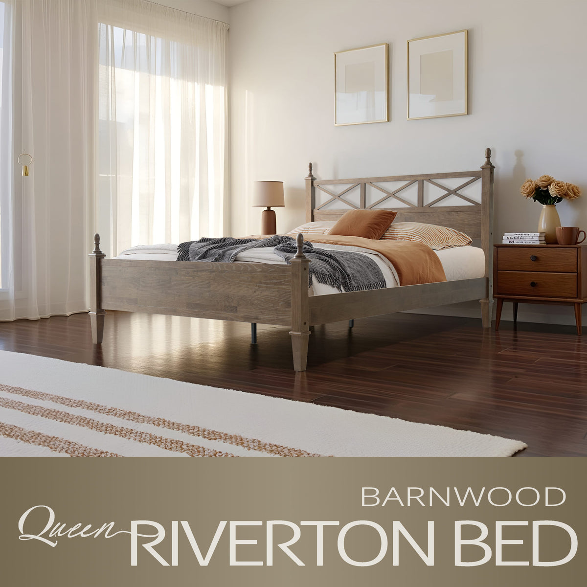 Experience rustic charm and timeless craftsmanship with the Riverton Queen Size Bed Frame by East West Furniture. Expertly built from 100% solid Hevea wood (Rubberwood), this platform bed blends strength, style, and durability. The Barnwood finish highlights the natural texture and rich tones of the wood grain, adding warmth and sophistication to any bedroom - perfect for both modern and traditional spaces. The cross-pattern headboard with turned posts introduces a refined farmhouse aesthetic, giving your room a classic yet elegant touch. Designed for superior support, the Riverton Bed includes 12 durable wooden slats, reinforced metal center legs, and a solid wood frame, offering a noise-free, non-slip foundation that ensures restful comfort night after night. With 8.3 inches of under-bed clearance, it provides generous storage space and easy cleaning access. Every element, from the finely finished back panel to the smooth, rounded edges, showcases East West Furniture’s dedication to meticulous detail and premium design.